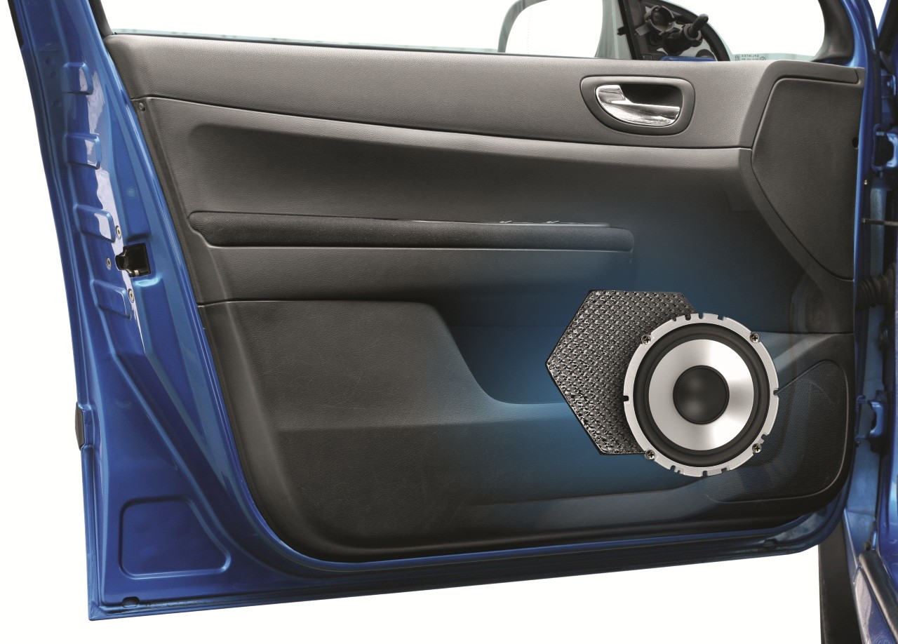 - Гъвкав самозалепващ трислоен материал, предназначен за монтиране зад говорителя в автомобилната врата.