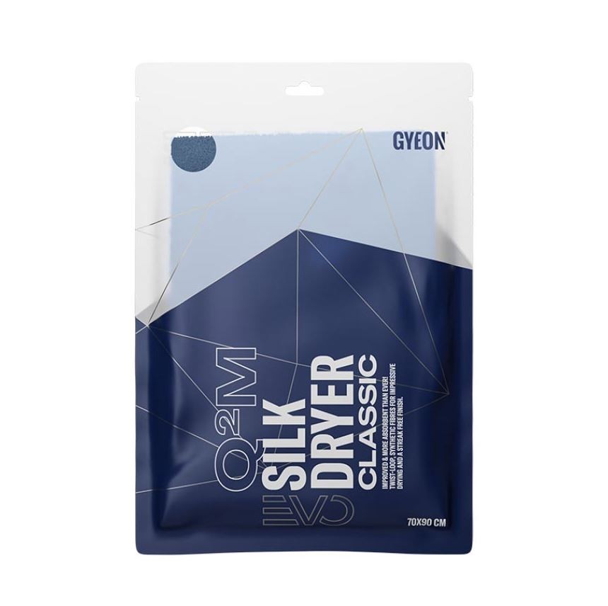 Gyeon Q²M SilkDryer EVO Classic е обновена и подобрена версия на една от най-иновативните кърпи за сушене на марката Gyeon. В сравнение с първоначалната версия, представена още през 2015 г., вариантът EVO има увеличена плътност до 530 g/m². Общата попиваемост е до 50 % по-висока отколкото преди. Моделът EVO има редуцирани ръбове до абсолютния минимум, така че кърпата да бъде още по-функционална и безопасна за чувствителни панели с сложни форми. Качеството на аксесоарите за грижа за автомобила е изключително важно. Качеството на микрофибъра, краищата и шевовете, попиваемостта на кърпата и нейната издръжливост спрямо десетки цикли на пране определят резултатите от всеки детайлинг процес. Продуктите от микрофибър се използват при измиване, деконтаминация, сушене, полиране, при работа с керамични покрития и поддръжка на всеки елемент от автомобила. Те могат да ускорят и оптимизират всяка дейност или да съсипят крайния резултат. Затова Gyeon предлага някои от най-добрите микрофибърни продукти за автомобилната индустрия.