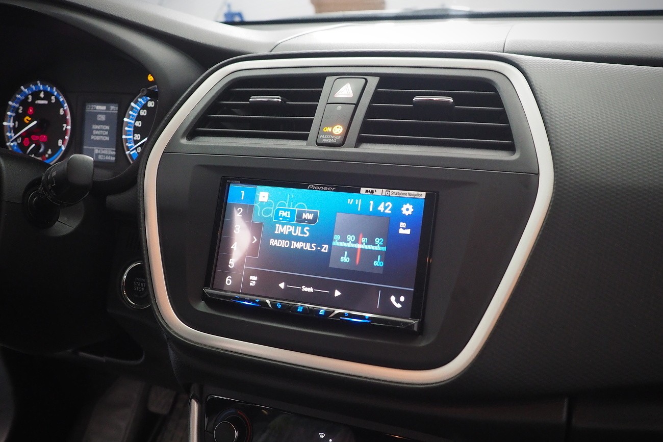 В автомобила Suzuki S-Cross инсталирахме мултимедийно 2DIN радио Pioneer с 7" сензорен дисплей, DAB тунер, Bluetooth handsfree за разговори и слушане на музика, USB вход и други модерни функции. Впечатляват също функциите Apple CarPlay и Android Auto, които позволяват връзка с мобилен телефон и използване на много приложения, включително навигацията Google Maps или Waze. Управлението от волана запазихме благодарение на подходящ адаптер и монтирахме и паркинг камера, която предава изображението на дисплея на новоинсталираното радио.