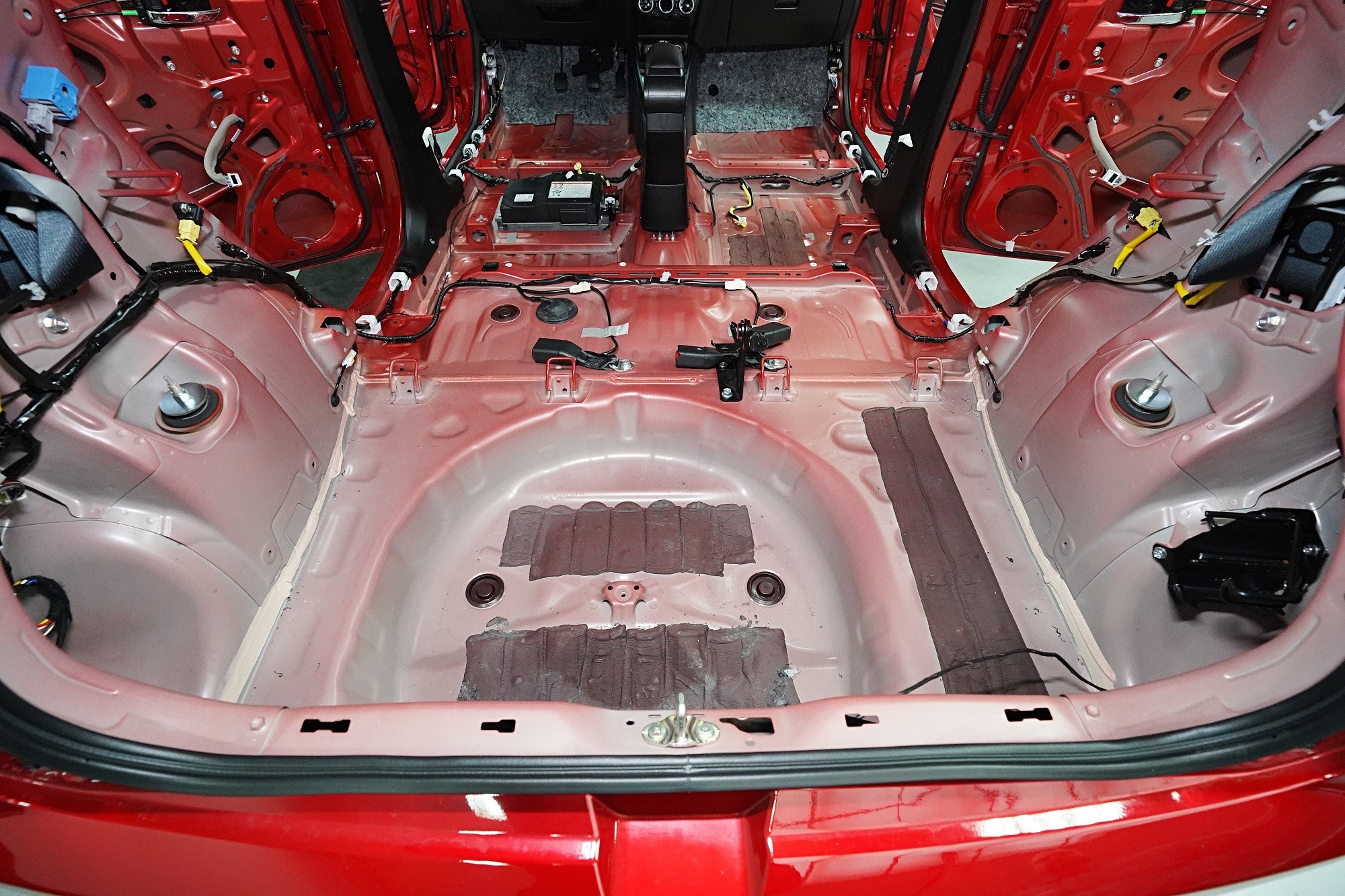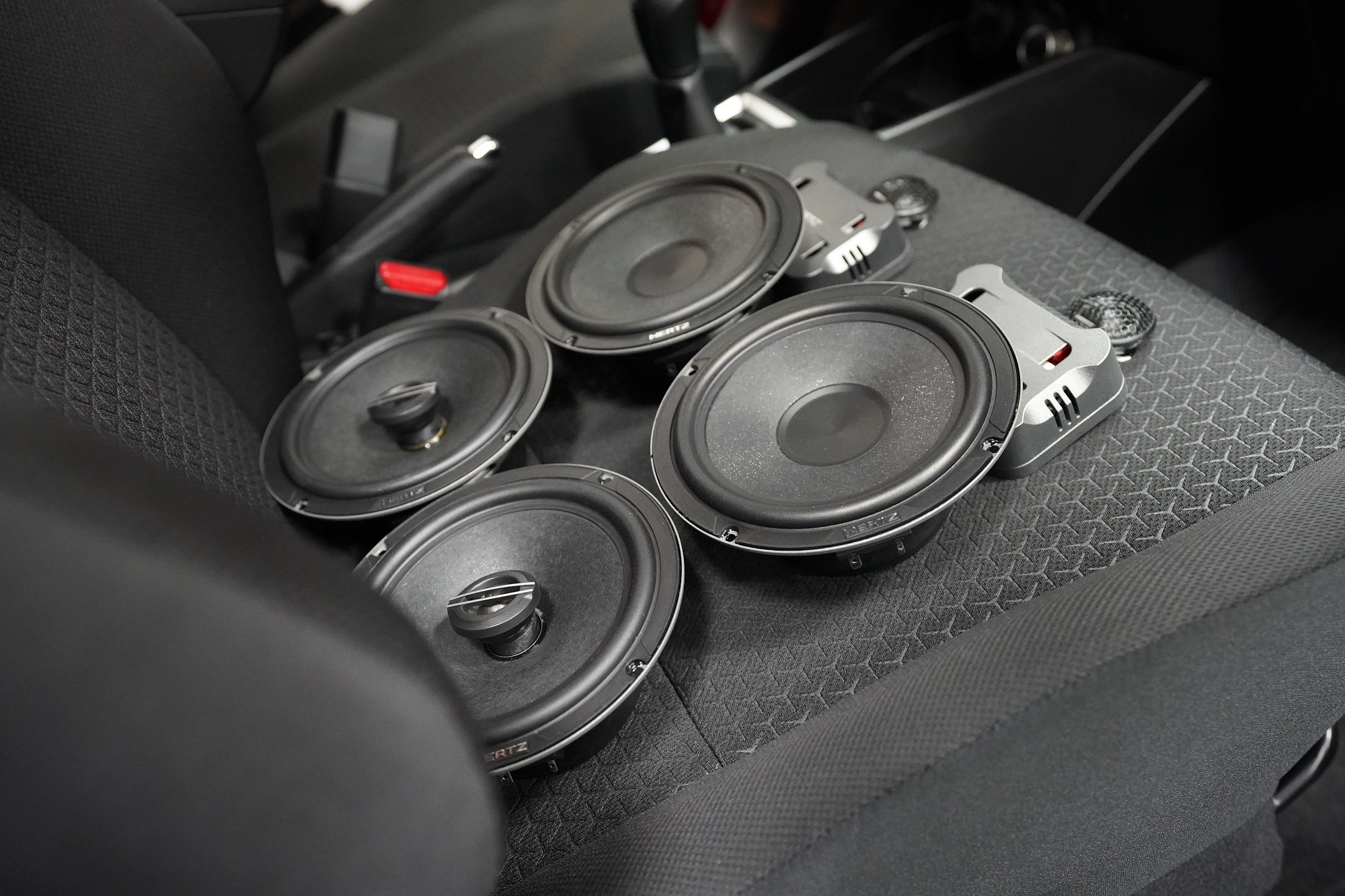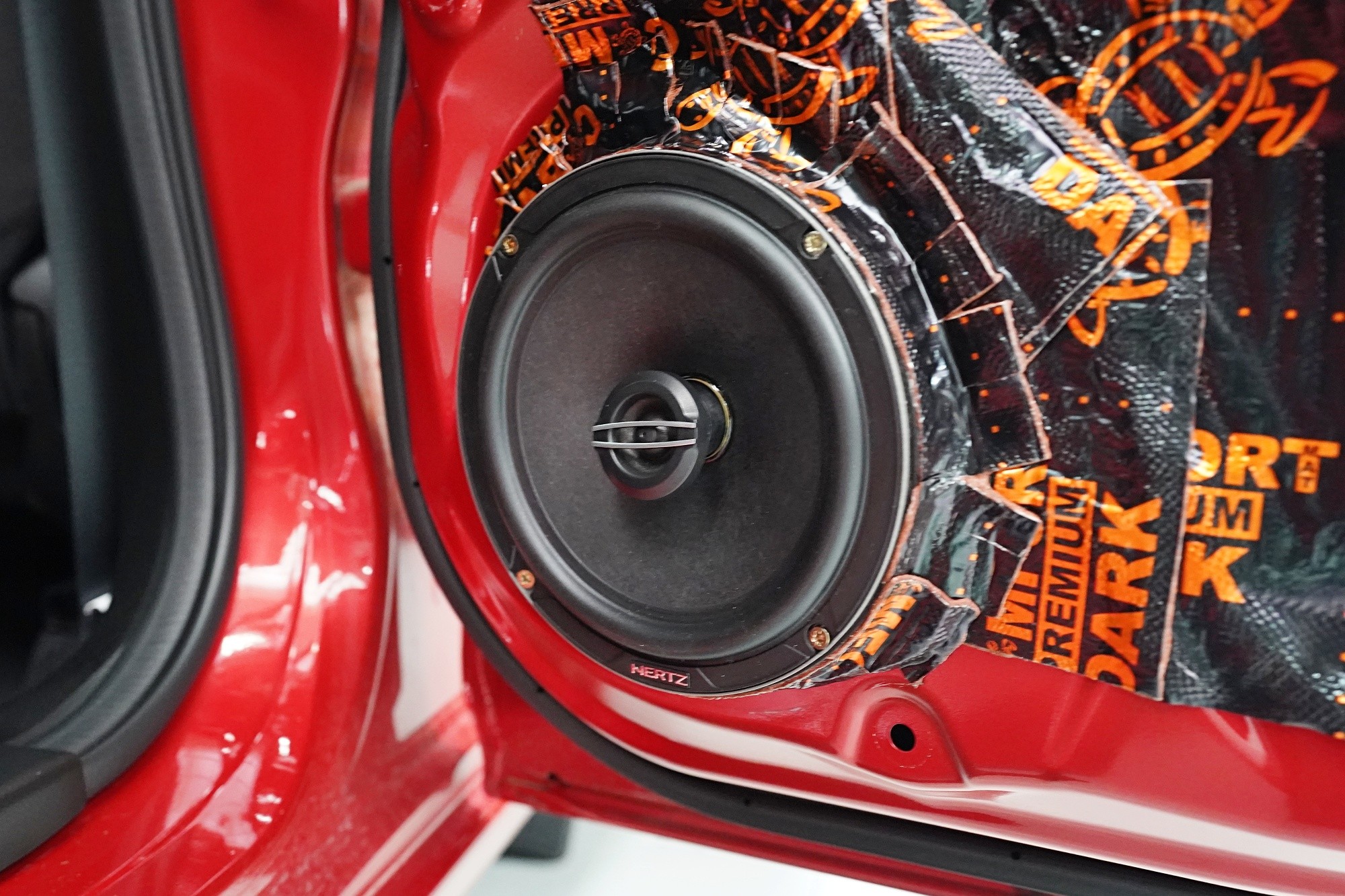 Шумоизолация и смяна на заводските говорители в автомобила Suzuki Swift. Малките автомобили на японските и корейските производители са много лошо шумоизолирани и положението е такова, че заводската звукова изолация присъства само под формата на тапицерия на пода и багажника с дебелина максимум няколко милиметра. Резултатът е естествено значителен шум в интериора, проникващ практически от всички страни. Друго специфично за този автомобил е необходимостта от прилагане на много тънки материали, но за това сме подготвени благодарение на широката гама продукти в нашето предложение. С собственика се договорихме за пълна шумоизолация в рамките на нашия пакет Expert с индивидуална промяна на конфигурацията по гореописаните причини. Пакетът Expert включва шумоизолация на всички важни части на автомобила — конкретно на предните, задните и петите врати, пода, покрива, багажното отделение, капака на двигателя, таблото и предните и задните арки от вътрешната страна. В рамките на инсталацията също така сменихме говорителите в предните и задните врати. Клиентът в нашия демонстрационен панел избра комплект говорители на италианския производител Hertz от моделната серия Cento, която е оптималното решение за ъпгрейд на заводските говорители. Ако се интересувате само от шумоизолация, цената беше 35 083 Kč и работата ни отне 30 часа. По инсталацията работиха едновременно четирима наши опитни техници, които монтират в рамките на 1 ден.