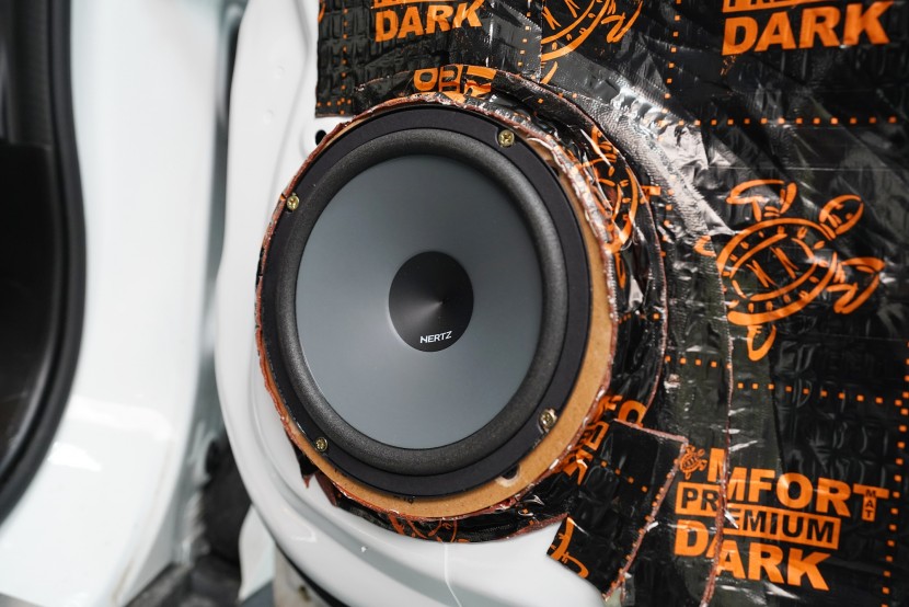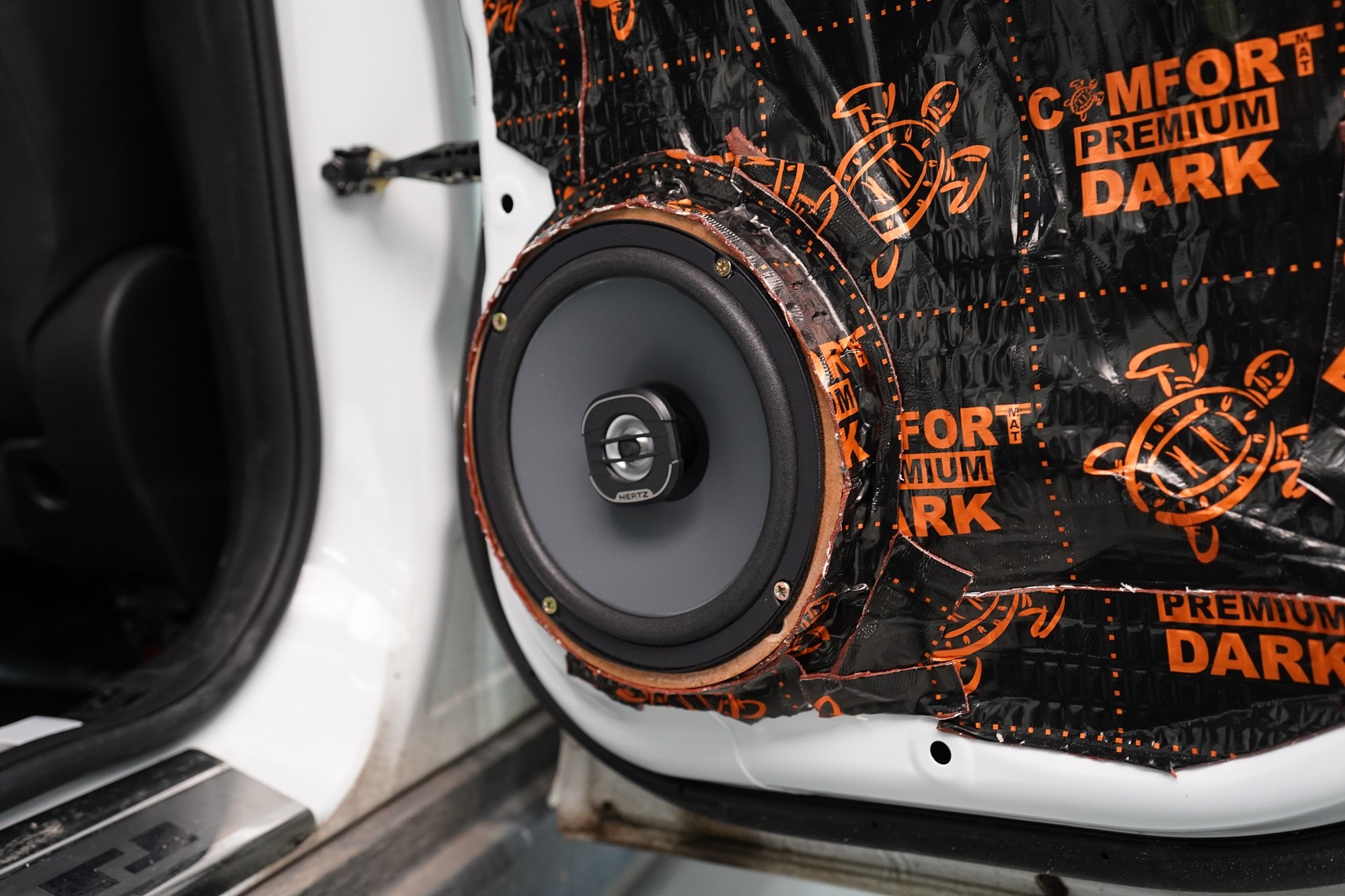 Смяна на говорители и базова шумоизолация на автомобил Suzuki Vitara. Лошо звучащите фабрични говорители заменихме с компоненти на италианския производител Hertz. В предните врати поставихме популярните компонентни говорители Hertz K 165 от базовата моделна серия Uno. Благодарение на тяхната висока чувствителност монтажът е възможен и без външен усилвател и дори фабричното радио доставя достатъчно мощност за тези говорители. В задните врати избрахме същите говорители, но в коаксиална версия с интегриран високочестотен говорител. По отношение на шумоизолацията, според изискванията на клиента извършихме шумоизолация на всички врати и багажното отделение. Цялата инсталация успяхме да завършим през 1 ден благодарение на присъствието на двама наши техници. Показване на продуктиСкриване на продукти