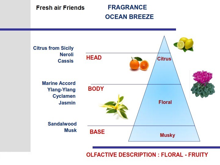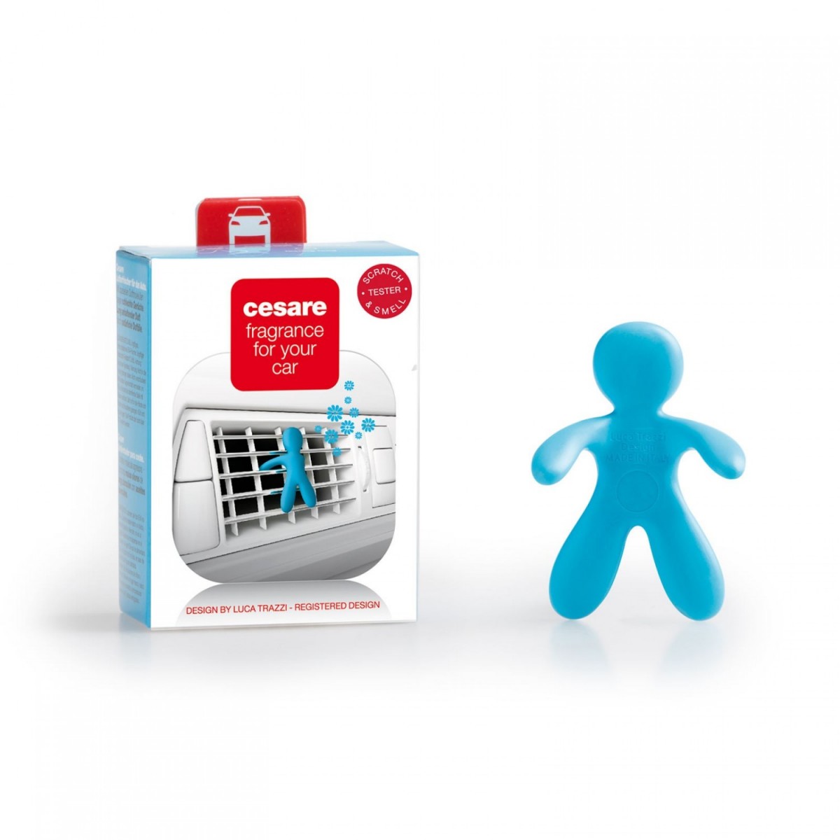 Cesare е освежител за въздух за автомобили, който съдържа активни молекули, които могат дълго да се борят с коварните бактерии, причиняващи неприятни миризми. Свежият аромат Ocean Breeze (морски бриз) - свежи тонове на узрели цитрусови плодове с cassis и neroli, морски акцент с ylang-ylang и жасмин, сандалово дърво и мускус. Фигурката Cesare от колекцията популярни фигурки Fresh Air Friends на Mr&Mrs Fragrance е идеален партньор за ароматизиране на интериора на вашия автомобил.Фигурка за вентилационната решетка Mr&Mrs Fragrance от серията CESARE