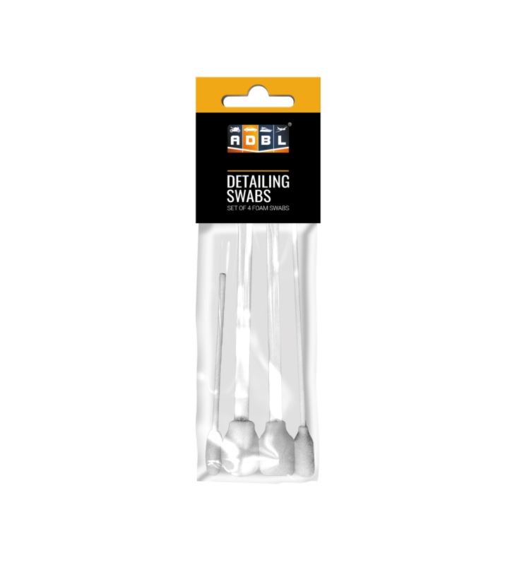 ADBL детайлинг тампони, с които можете да почистите дори трудно достъпни места в интериора, но и в екстериора на автомобила. В опаковката ще намерите 4 броя различни вида тампони. Всеки отделен тампон е закрепен на пластмасова пръчица.