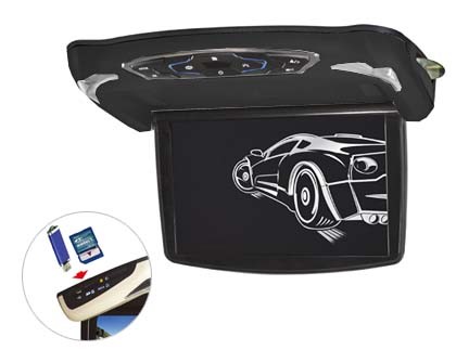 Таванен отварящ се монитор 13,3\" черен/сив, с DVD плейър, четец на SD/MMC карти, USB порт и формат 16:9.