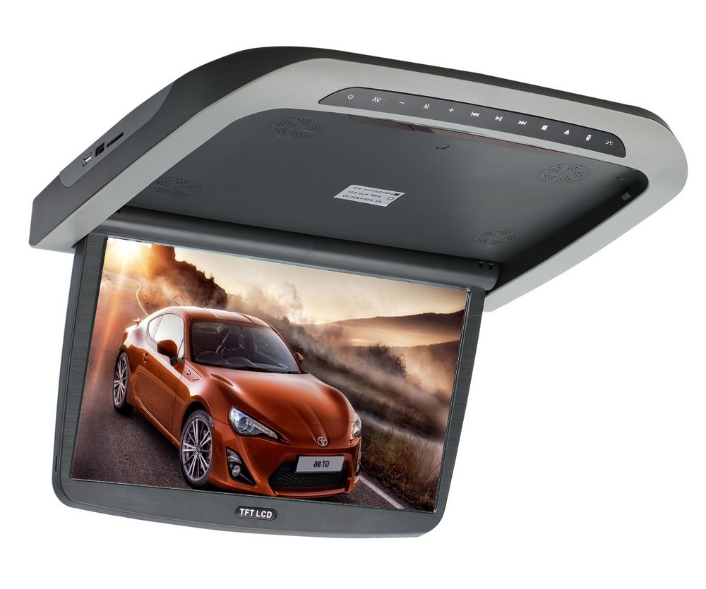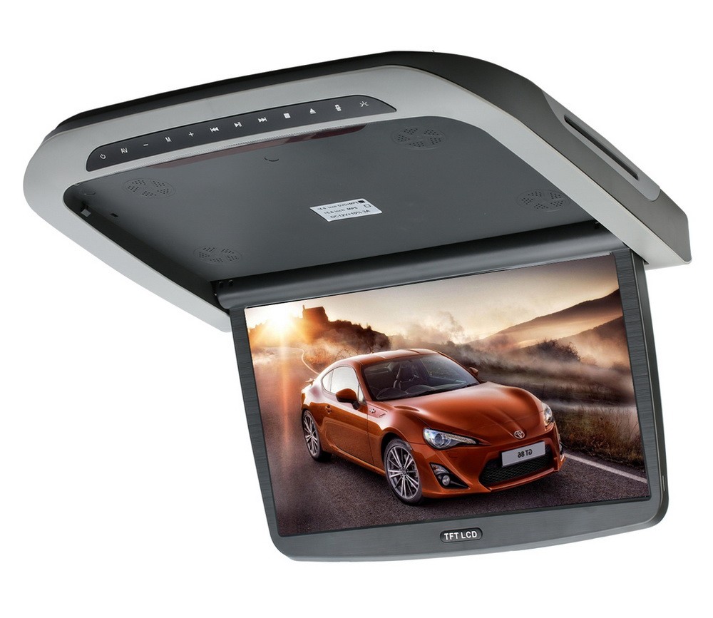 Таванен сгъваем монитор 15,6\" сив, с DVD плейър, четец за SD/MMC карти, USB порт, HDMI и формат 16:9. Дистанционно управление с вградена игрова конзола.