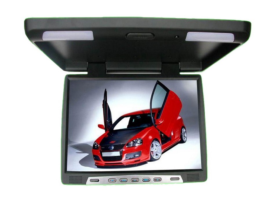Kачествен голям таванен LCD монитор 17.1“ предназначен главно за просторни леки автомобили и автобуси. К монитора може да се свърже произволен външен източник на композитен видеосигнал (напр. DVD, видео, камера и т.н.).