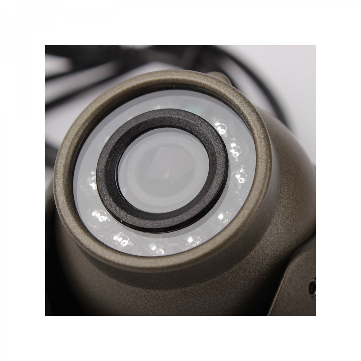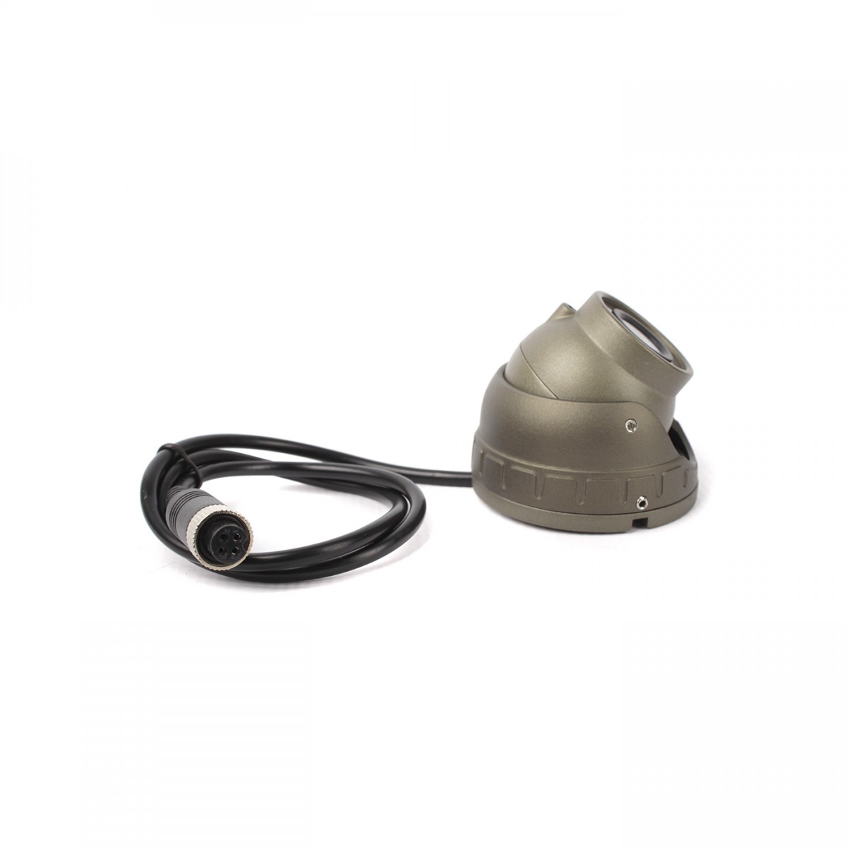 AHD камера за превозно средство с резолюция 720p и автоматично IR осветление, предназначена за показ на AHD монитор, захранва се от монитора чрез винтови конектори M12 4PIN, идеална за използване като таванна в товарното пространство или кабината. Обективът може да се завърта и накланя според нуждата. Металното тяло и устойчивостта на вибрации я правят подходяща за употреба и при по-тежки условия. Ориентацията на изображението се настройва на монитора, хомологирана е.