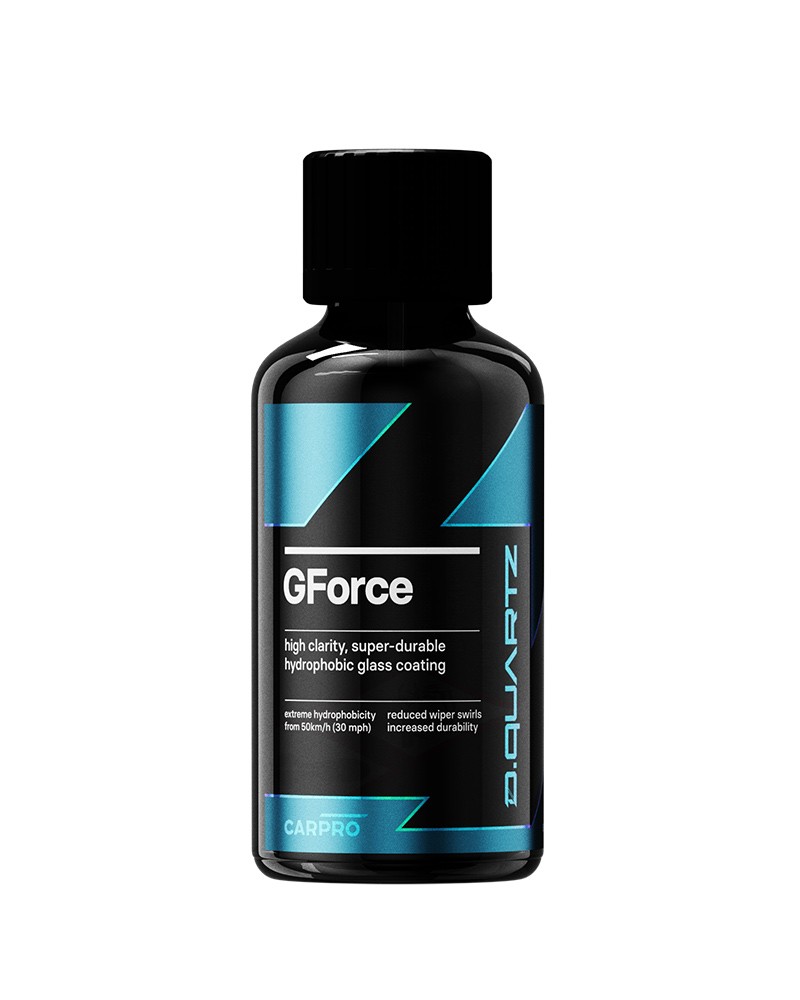 CarPro DQuartz е супер издръжливо и супер хидрофобно покритие за стъкла на базата на нанодиамантена технология. Това е изцяло новото покритие за стъкла CarPro GForce с нанодиамантена технология, което осигурява отлична защита и кристално чист и безопасен вид през стъклото - никога не е късно да подобрите защитата на вашите прозорци! В CarPro с гордост представиха изцяло новия CarPro GForce, технологична революция, която повдига преживяването при шофиране на ново ниво. Продуктът има преработена хидрофобна и адхезивна технология, за да се осигури здраво свързване със стъклото и капките вода без усилие да се плъзгат от стъклото, което дава отличен хидрофобен ефект дори при скорости под 50 km/h. Кажете сбогом на размазано виждане в дъждовни дни! CarPro GForce предлага перфектното решение - съдържа най-новата DQ технология с нанодиамантени частици, които осигуряват безпрецедентна устойчивост на надраскване. Това покритие не само възстановява блясъка на прозорците, но и ги предпазва от надраскване и замърсяване - вашите прозорци остават без петна. Независимо дали е горещо лято, студена зима или неприятна есен, CarPro GForce винаги е идеалният избор. В заключение - това издръжливо и ефективно покритие осигурява дълготрайна защита на прозорците, предоставяйки не само отлична защита и естетика, но и изключителна видимост при всички метеорологични условия, което значително повишава безопасността при шофиране.Основни характеристики