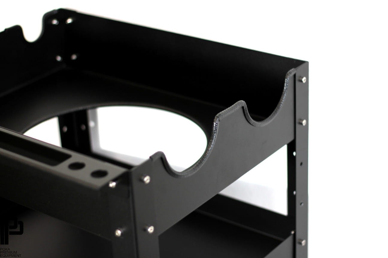 Версия на детайлинг тележката, разширена със специален отвор за машина за почистване на подложки. Тележката е предназначена за професионални и аматьорски детайлинг студия. Тя е фокусирана върху удобството и функционалността, много практична и изработена от най-висококачествените материали, което значително ще повиши комфорта на вашата ежедневна работа. Правилната височина, иновативните решения и гаранцията за стабилност са само някои от нейните предимства. Изработена е от висококачествена устойчива стомана, прецизно рязана и огъната, покрита накрая с прахово покритие (вътре и отвън) за осигуряване на допълнителен защитен слой срещу окисляване и повреди. Отворът за кофа е защитен със подсилен уплътнител.