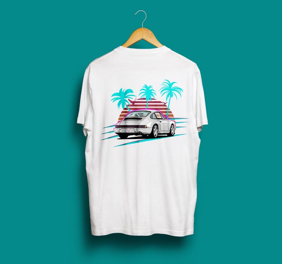 тениска с мотив Porsche и USA, размер S, бял цвят