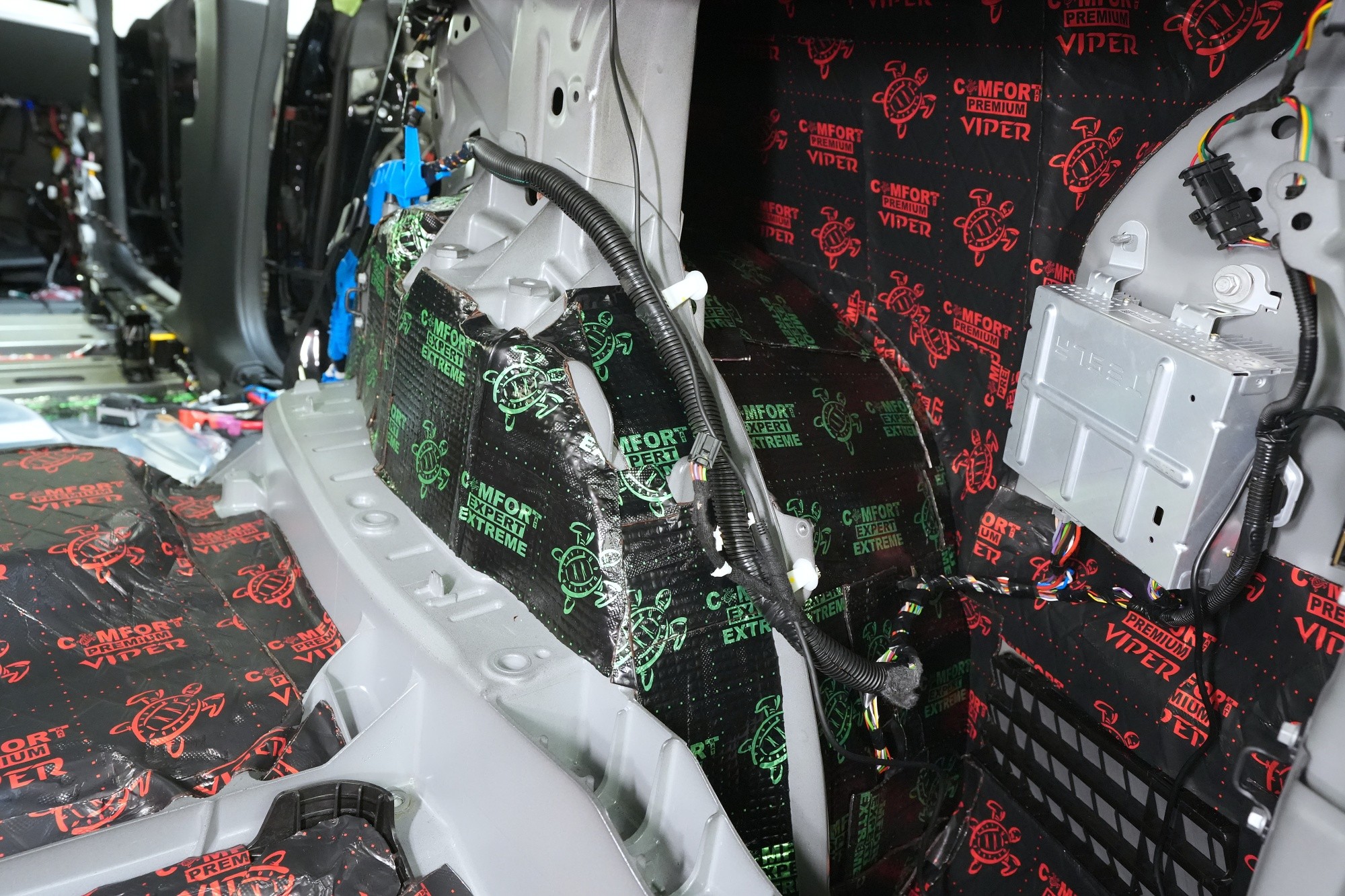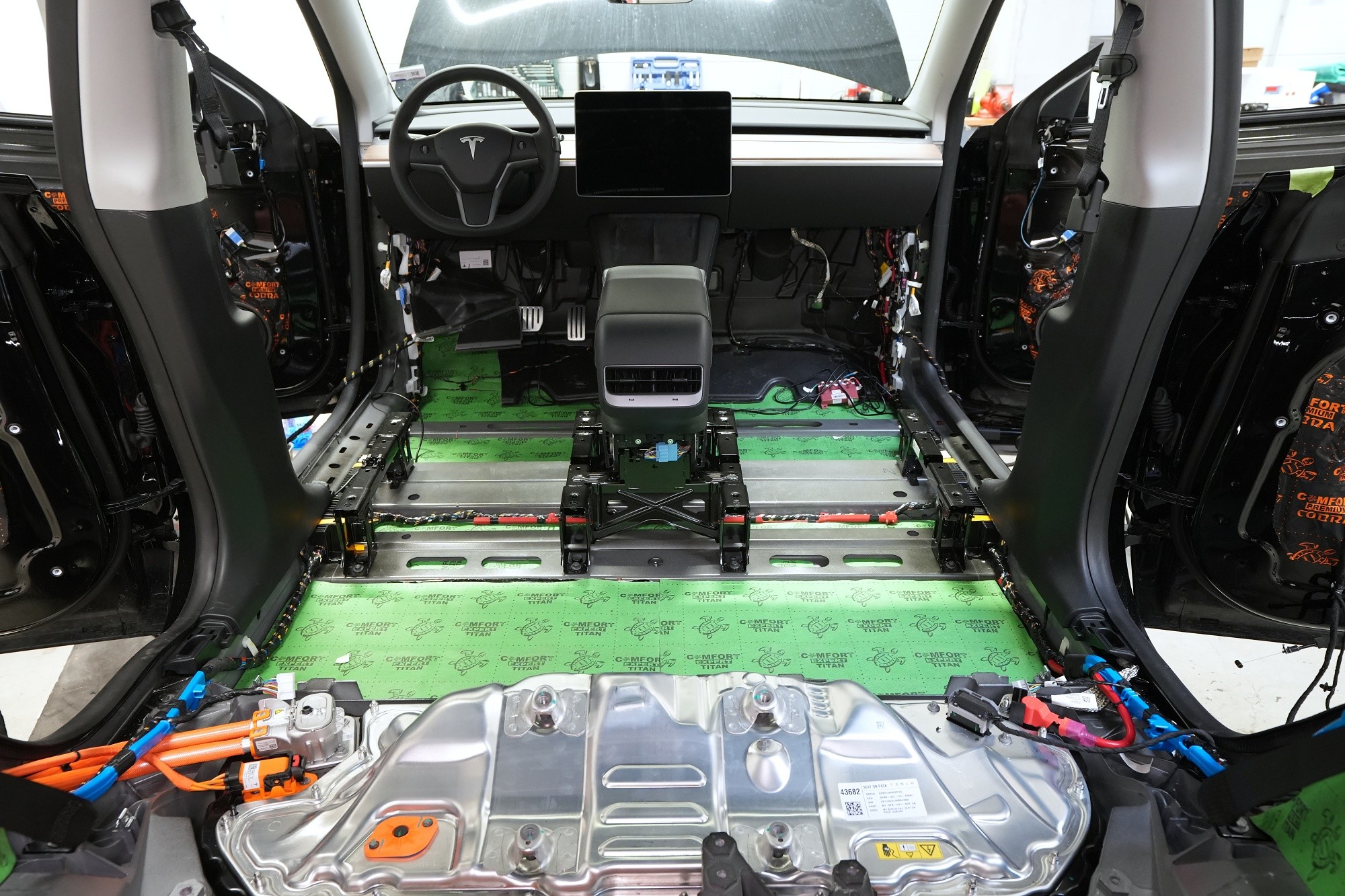 Шумоизолация на автомобил Tesla Model Y в нашата максимална конфигурация. Интересът към шумоизолацията на автомобили Tesla при нас нараства и това не е учудващо. Заводската звукоизолация на Tesla е една от най-лошите и ако собствениците очакват тих автомобил, обикновено са много разочаровани. Model Y не е изключение и затова неговият собственик се обърна към нас с молба за шумоизолация с най-доброто, което разполагаме. Избрахме нашия пакет за шумоизолация Premium Plus, който персонализирахме и подбрахме материали за максимална ефективност, предимно от най-високата серия Comfortmat Expert. Фокусирахме се върху всички ключови области на автомобила, по-специално предните, задните и петите врати, пода, багажното отделение, както и предните и задните калници от вътрешната и външната страна. По инсталацията работеха едновременно 4 наши опитни техници, които монтирането приключиха в рамките на 1 работен ден. Повече интересна информация можете да намерите в нашия фоторепортаж.