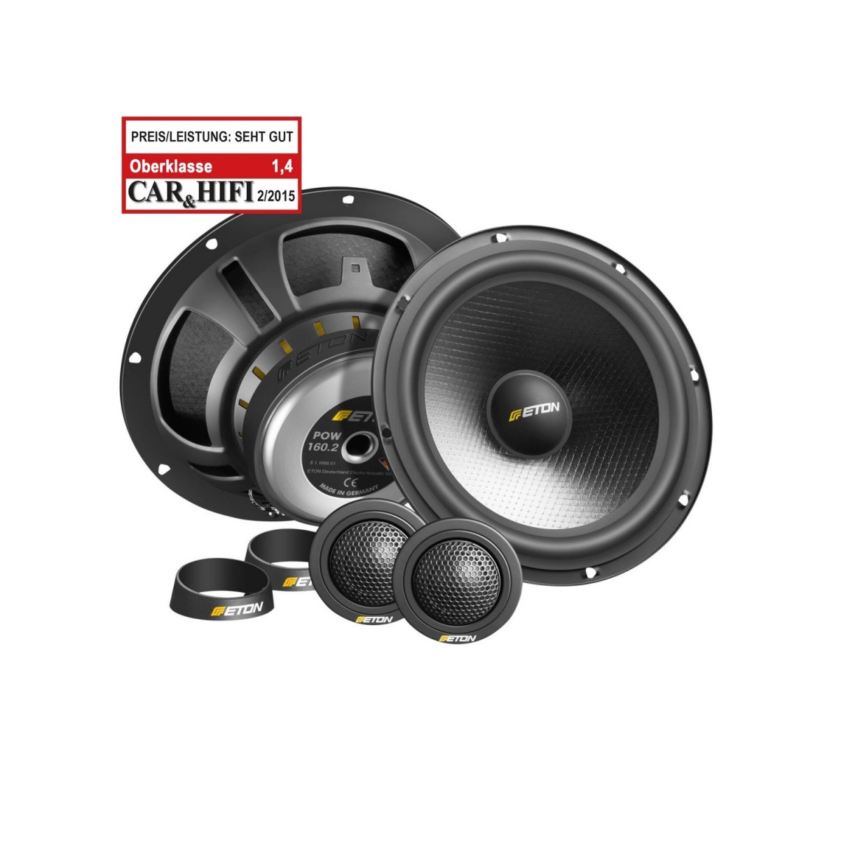 Tonkolini Eton POW 160.2 и POW 172.2 се считат за абсолютен връх в продажбите на 165 mm двулентови компонентни говорители на ETON. Често се питате за разликата, защото и двете системи са почти идентични. Малката, но фина разлика лежи в естеството на високочестотния говорител. Докато POW 172.2 имат купол покрит с алуминий, високочестотният говорител при POW 160.2 е оборудван с тъкан (коприна). Характерна особеност остава високият импеданс, който дава на усилвателя на радиото и мощността рязко увеличение на нивото на звука. Визуално - POW 160.2 се издига с поредица иновации към върховата лига. Кошът е сега сатенено черен, новопроектираният кросоувър в RSE дизайн увеличава атрактивността - всичко в уникалния дизайн на ETON. Мембраната от стъклени влакна и хартиени сандвич конструкции предлага отлична твърдост при ниско тегло. Чисти екстремни баси и кристално ясни високи честоти - тази двулентова система е гаранция за качествено слушане на музика в автомобила.Ключови характеристики на говорителите Eton POW 160.2