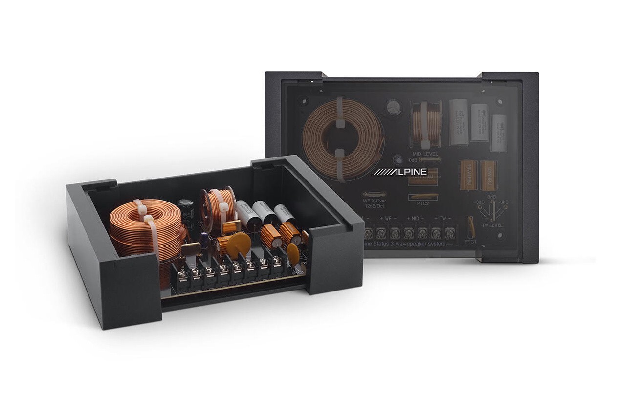 - Аудиофилски X-Overs - включените 2-посочни X-over мрежи съдържат ръчно подбрани първокласни компоненти и предлагат множество възможности за настройка - нивото на високоговорителя може да се настрои на +3 dB, 0 dB или -3 dB, а X-Over на басовия говорител може да бъде настроен на 12 dB/окт или 6 dB/окт. Покритието от опушен акрил с логото Alpine може да бъде издърпано отпред, за да получите достъп до винтовите клеми и джъмперите.