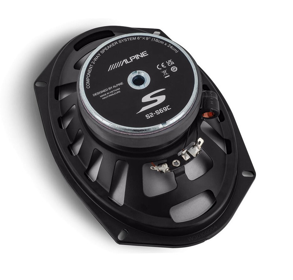 Компонентните тонколони от ново поколение S2-S69C 16 x 24 см (6 x 9") с нов дизайн и сертификация Hi-Res Audio задават нов стандарт в основното аудиопроизводство. Alpine вложи върхови възможности в тези говорители чрез използването на високоефективни материали и патентовани конструктивни елементи. Лекият конус на уфъра, изработен от комбинация от полипропилен, стъклени влакна и слюда, доставя основен звук с висока мощност и ниско изкривяване, необходим за производителността на Hi-Res Audio. Тонколоните от серия S на Alpine имат увеличени размери на магнитите за повече мощност и най-добра производителност в среднобасовия диапазон в своята категория. Обкръжението на уфъра High Amplitude Multi-Roll (HAMR) дава най-доброто от басите, като позволява максимално движение на конуса. Средночестотният говорител с диаметър 7,9 см (3") с високочестотен говорител 2,5 см (1") в въртящ се корпус ще ви достави всички детайли от средните и високите честоти, които ви липсваха при фабричните говорители. Всички говорители от серия S имат широк монтажен обхват в автомобила и включват няколко адаптера и дистанционни шайби. Благодарение на използването на in-line кросоувъри тези говорители могат да бъдат лесно и бързо инсталирани и в домашни условия.Основни характеристики