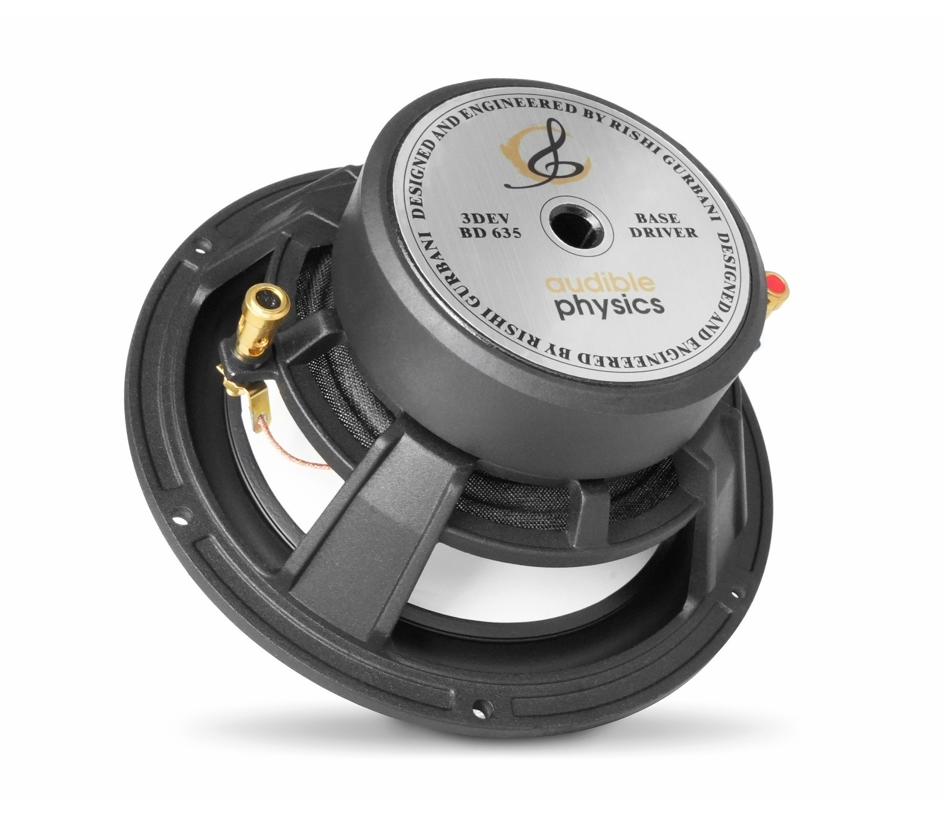 Средночестотните говорители Audible Physics BD 635 имат класическия дизайн на Audible Physics с традиционна бяла мембрана и купол в меден цвят. Мембраната е изработена от усъвършенствания материал MSP (Magnesium Silicate Polymer), който е известен с отличната си твърдост, много ниско тегло и минимални вибрации, позволяващи прецизно и естествено възпроизвеждане на звука. Сред другите предимства на този материал са практически нулевите вибрации, причинени от движението на мембраната, подпомогнати от здрав гумен висящ кант, осигуряващ оптимално демпфиране и напречна стабилност. Висящият кант също така елиминира движения, които биха могли да доведат до контакт с 25 mm подвижна бобина и здрав керамичен магнит с размери 90 x 20 mm. Бобината и други медни компоненти са изработени от най-висококачествената японска мед с изключителна проводимост и издръжливост. Специално проектираното отлято шаси на говорителя има множество предимства: то е изключително твърдо, елиминира вибрации и не се деформира толкова при движение на мембраната, както при класическите стоманени шасита. В същото време не намалява магнитното поле и отвежда значително по-ефективно топлината от подвижната бобина. На шасито привличат вниманието и масивните кабелни терминали, които обикновено виждаме при класическите субуфери.