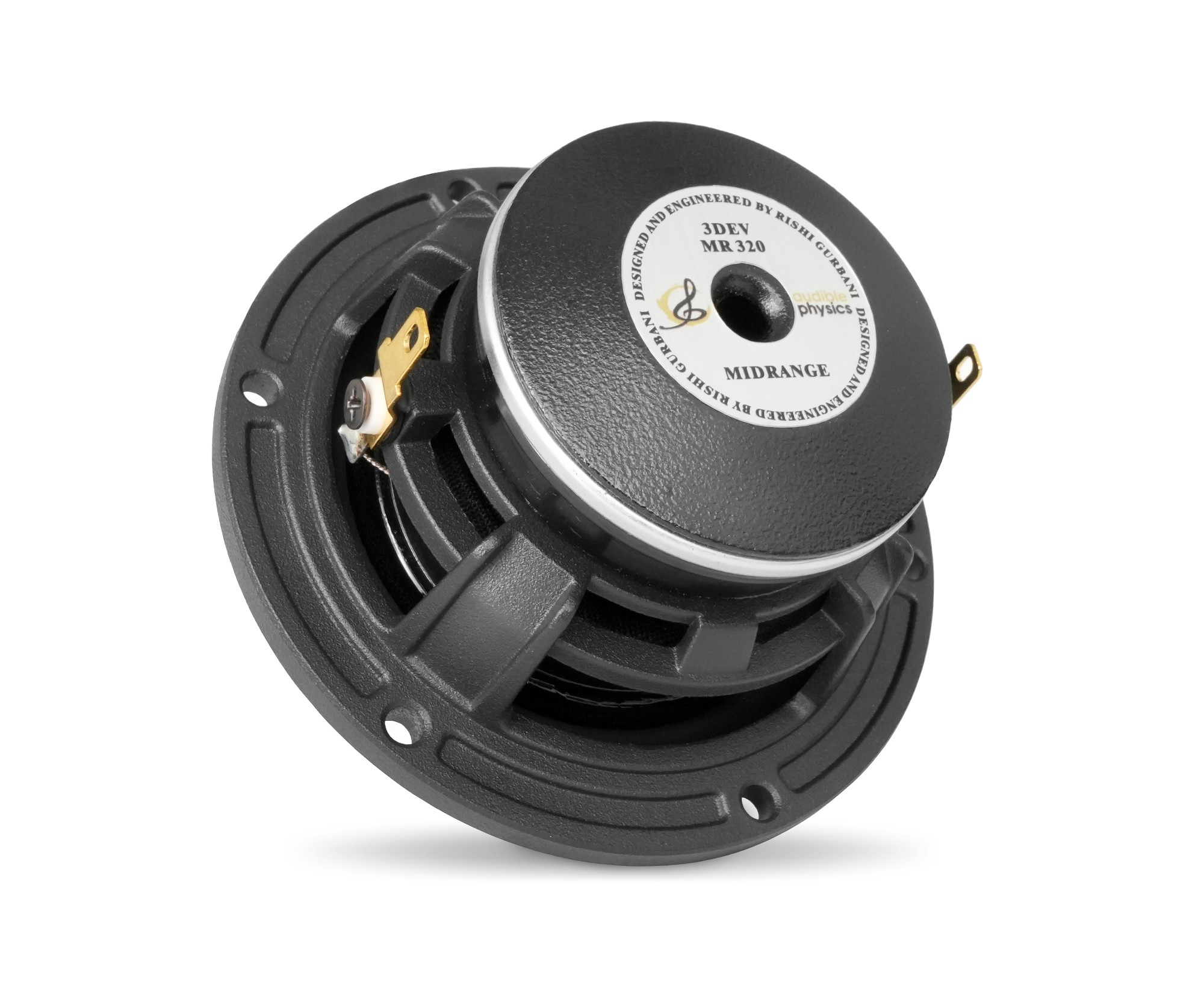 Средночестотните говорители Audible Physics MR 320 са проектирани да предоставят изключително звуково преживяване и аналитично прецизно възпроизвеждане на звука. Независимо дали слушате вокали, акустични инструменти или друг средночестотен материал, с Audible Physics MR 320 можете да очаквате впечатляващо чисто и прецизно представяне на средните честоти. Говорителите MR 320, както и средночестотните, се отличават с традиционна бяла мембрана и купол в меден цвят. Мембраната е изработена от материал MSP (Magnesium Silicate Polymer). Всички три компонента формират звуково изключително и перфектно съвместимо цяло, което ще удовлетвори ухото на всеки аудиофил.