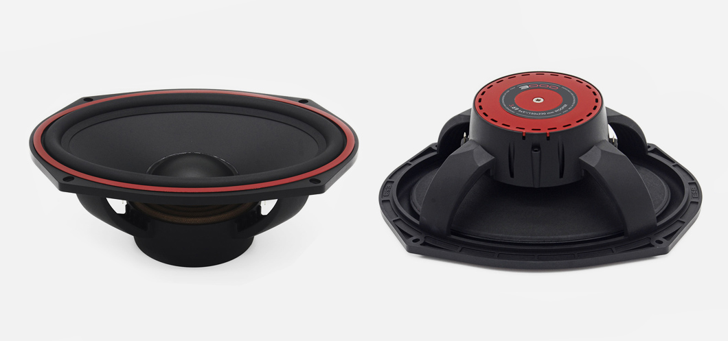 | Диаметър на среднебасовия говорителДиаметърът на говорителя се посочва като диаметър на целия говорител, без да се включват монтажните закрепвания, при които при по-малките говорители (87, 100, 130 mm) закрепванията може да стърчат допълнително. Някои говорители са овални и там размерът се дава в инчове, винаги от най-късата към най-дългата страна. Един инч е приблизително 2,5 cm. | 6 x 9" |