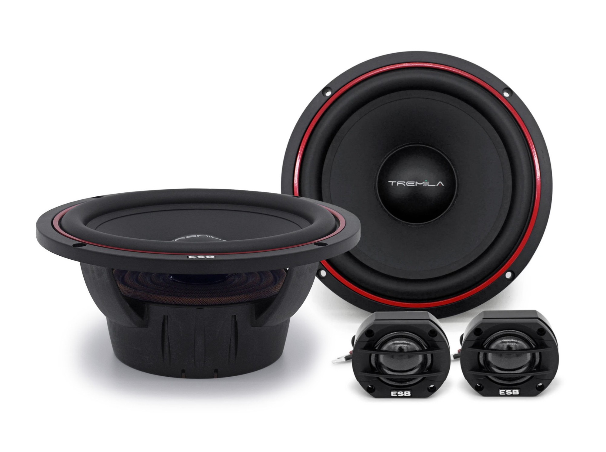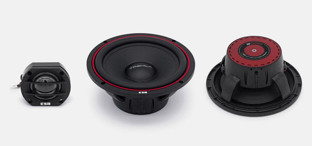 Акустичната система ESB от моделната серия 3000 (Tremila) е разработена и сглобена с голям ангажимент в изследването на материали и технически решения от най-високо ниво. Целта бе да се създаде пълна гама високоговорители и субуфери, насочени към високо качество на звука и универсален монтаж. Кошовете на говорителите са проектирани така, че да постигнат максимална торсионна твърдост. Диафрагмата от пресована хартия с водоустойчива обработка е най-доброто съчетание на лекота, твърдост и способност на диафрагмата да потиска нежелани вибрации. Всички средночестотни говорители са оборудвани с двигател с феритен магнит клас Y‑35, с значително по-висока ефективност в сравнение с класическите „стандартни“ феритни магнити. Високочестотните говорители от серия 3000 са произведени от ексклузивната нетъкана PPS тъкан Torcon® с високоефективно влакно, което притежава отлична термична устойчивост, ниско тегло, отлични самопоглъщащи свойства и резонансна честотна характеристика извън чуваемия диапазон. Резултатът е много мек и прозрачен звук на високочестотния говорител с максимална детайлност. Бобината разполага с отлично вентилиране с антирезонансни камери и е заглушена със специално масло на базата на течен железен материал. Комплектът съдържа високочестотни и средночестотни говорители без честотни кросоувъри.