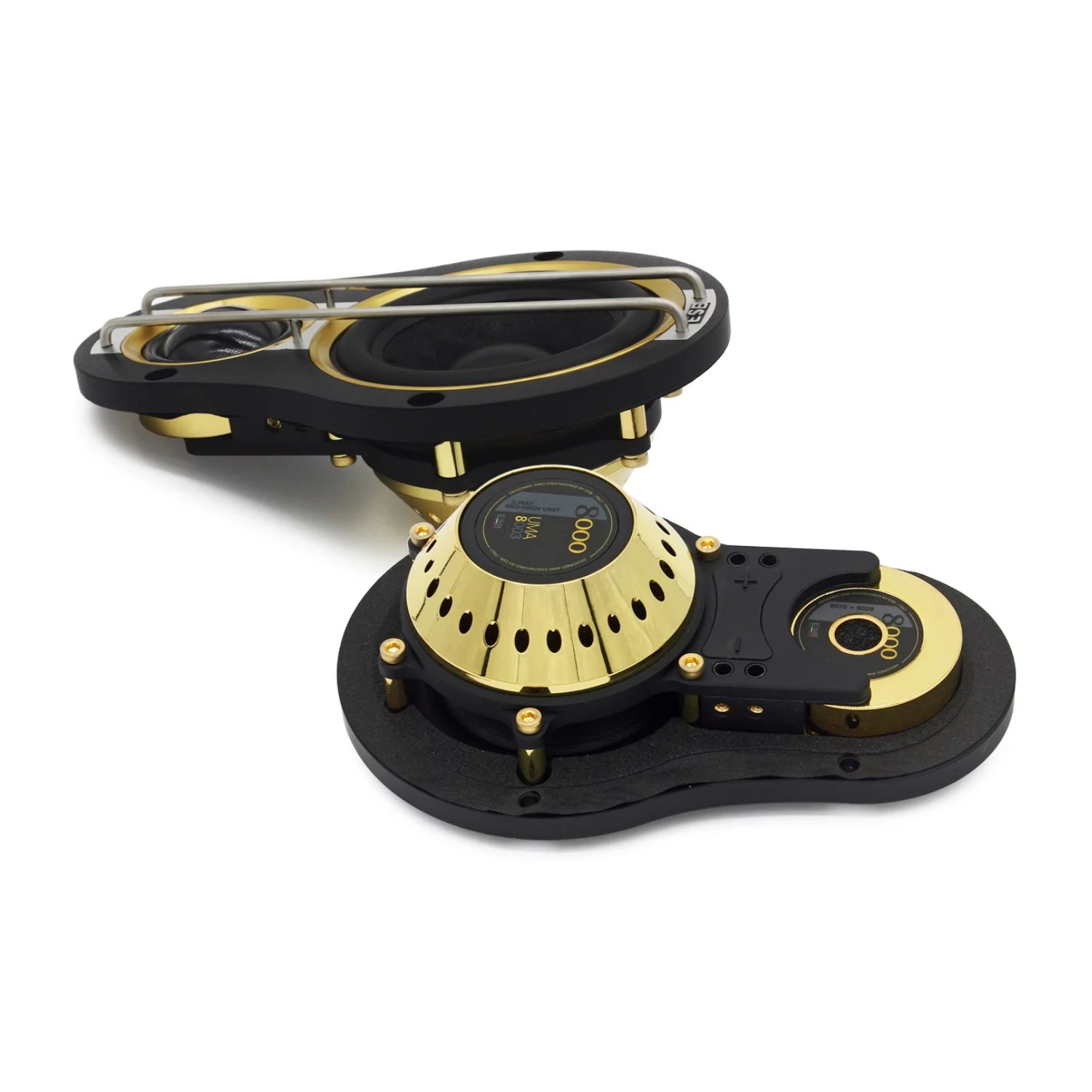 Модулната серия 8000 (Ottomila) може да се счита за пряк наследник на днес вече легендарната серия 7000 за домашно озвучаване. Целта беше да се възстанови тази изключителна серия говорители с помощта на най-новите технологии и използването на най-добрите материали, които са налични днес. И това с оглед на универсалността на инсталацията. Ключът при разработката на този тип система за автомобилни приложения беше максималното използване на необикновената музикалност на тогавашните говорители. При серия 8000 всеки детайл бе обработен с максимална грижа — от подборa на материали, конструкцията и повърхностната обработка на кошовете до вентилационните системи на магнитите и бобините. В ESB подобриха всичко, което до този момент се смяташе за невъзможно, и са убедени, че полагат основите за следващите десетилетия на успех. Преценете сами. На пръв поглед впечатлява луксозният дизайн с метални елементи в златист цвят, кош от алуминиева сплав, втвърдена хартиена мембрана за възможно най-реалистично възпроизвеждане на звука и първокласни високочестотни говорители от алуминиево-меден сплав със мембрана от ексклузивния материал Torcon®. Удивява и абсолютно луксозната опаковка от комбинация дърво и стъкло. Общо взето става дума за безкомпромисни high-end говорители, които ще задоволят и най-взискателните клиенти. Предлагат се двупосочни и два варианта на трипъсочни системи, подходящи за активно свързване към усилвател и DSP процесор. Този комплект съдържа уникална UMA единица, която включва както високочестотен, така и средночестотен говорител. Този специален и ексклузивен компонентен преобразувател е концепция, родена още през 70-те години и целта му е да съсредоточи средночестотните и високочестотните говорители в една виртуална точка. Това минимизира фазовите забавяния и неравностите в точката на пресичане. Говорителят се състои от 28 mm високочестотен говорител и 75 mm средночестотен говорител с различна прахова капачка, за да изпълнява средночестотната функция (не широколентово) и да не пречи на честотите на високочестотния говорител.