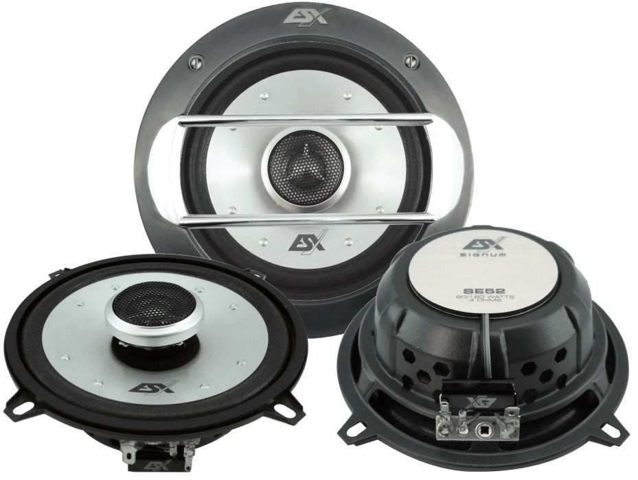 | Тип на високоговорителитеКоаксиални високоговорители: Коаксиалните високоговорители се характеризират с конструкция, наречена всичко в едно. Високочестотният и среднобасовият говорител са в един и същ кош. Предимството е по-лесен монтаж, но поради свързването или близостта на честотните диапазони в един говорител обикновено се понижава качеството на звука. Обикновено в центъра на среднобасовия говорител се намира високочестотният говорител, чиито звукова бобина работи във втората въздушна междина на общия магнитен кръг. Коаксиален говорител с три честотни диапазона се състои от среднобасов говорител, отпред на специален носач е поставен средночестотният говорител и отделен високочестотен. Компонентни високоговорители: Компонентните високоговорители се отличават с разделянето на отделни честотни диапазони: високочестотен + среднобасов + евентуално басов диапазон. Отделните говорители могат да бъдат разположени напълно отделно, което води до по-добро звуково и акустично представяне. В огромното мнозинство от случаите при компонентните високоговорители се доставя и външна кросоувърна мрежа, която разделя високите, средните/среднобасовите и при системи с три честотни диапазона и басовите честоти, както и позволява настройване на нивото в децибели на високочестотния говорител (напр. +2 dB, 0 dB, -2 dB), стръмността (напр. 6 dB/октава, 12 dB/октава) или активно/bi-amp свързване. | коаксиален двулентов |