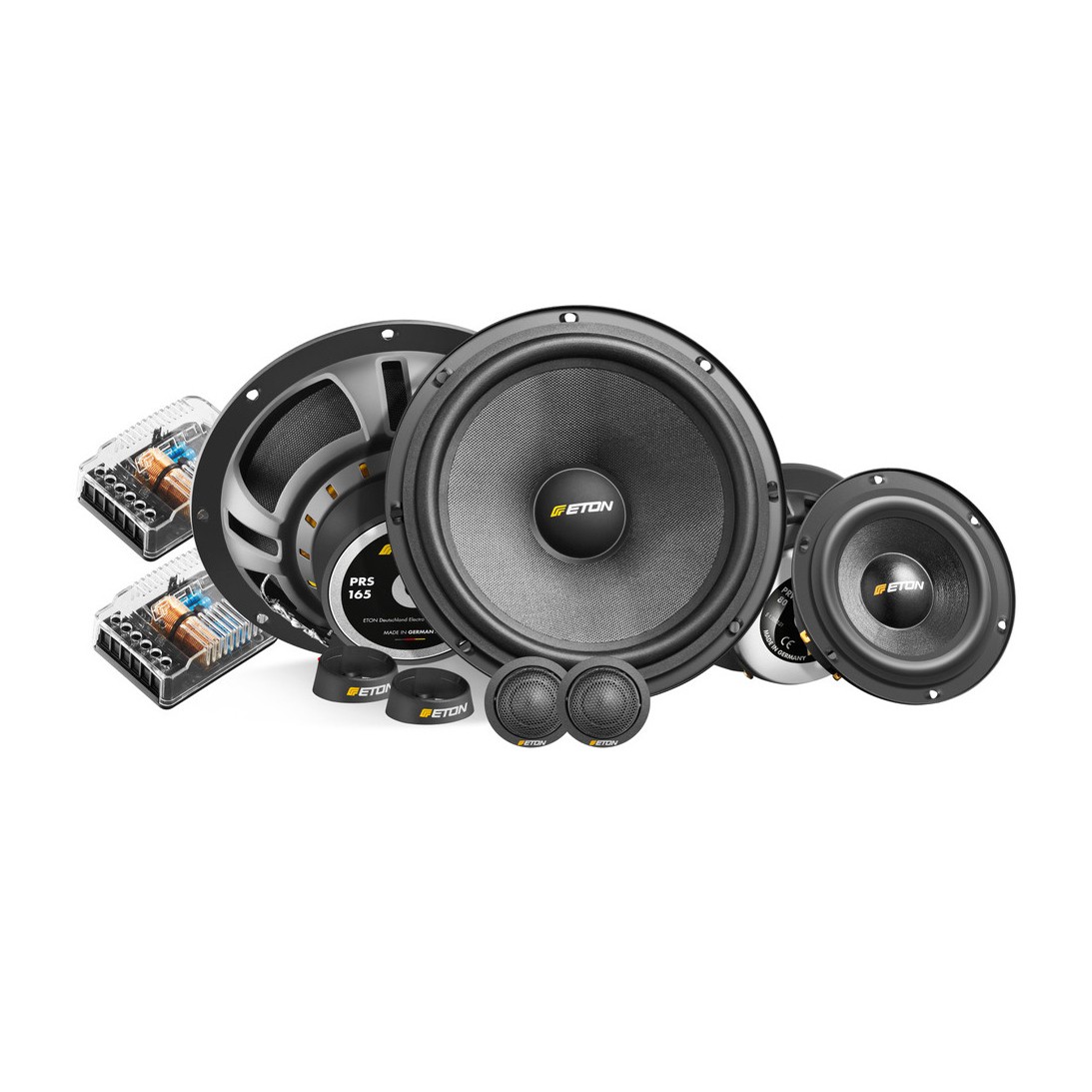 Eton PRS 165.3 е частично активна 3-полосна компонентна система, която е сред най-добрите в своя клас! Усилената мембрана от стъклени фибри и хартия осигурява динамично и мощно възпроизвеждане на звука. Открито звучащият средночестотен говорител с богати детайли — това са само някои от качествата на компонентната система PRS 165.3. Подсилената метална кошница осигурява оптимална стабилност и предлага добър въздушен поток за феритния магнит. За свързване на басовия говорител е необходим басов филтър при източника на сигнала или усилвателя. 19 mm високочестотни говорители имат копринени и фини тонове, които звучат ненатрапчиво. Възпроизведеният звук е мек, пълен с детайли и разполага с ясни високи тонове. Отличните им характеристики придават нужния заряд, който очаквате от говорители в тази категория. В комплекта на PRS 165.3 е включен висококачествен честотен кросоувър, оборудван с прецизно конструирани въздушни бобини и премиум фолиеви кондензатори. И тук е възможен двустепенен средночестотен филтър на 6 dB / 12 dB. 80 mm средночестотни говорители впечатляват с ръчно покрита хартиена мембрана и усилена метална кошница, която осигурява висока стабилност. Те се задвижват от мощен феритов магнит с оптимизирана симетрия на магнитното поле. Добре вентилираната кошница и носачът на говорилната бобина осигуряват достатъчно охлаждане дори при високи нива на звука. Това гарантира детайлни средночестотни тонове с висока ефективност.
