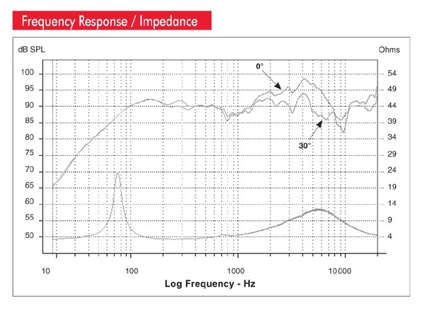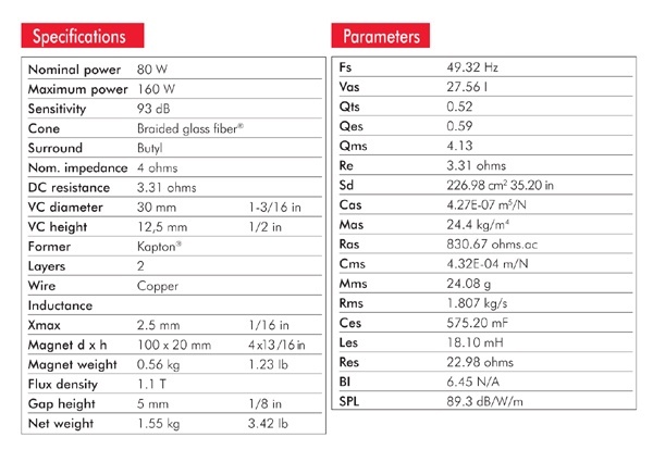 | Čувствителност (2,83V/1m)Чувствителност, сензитивност или ефективност на говорителя. Чувствителността на говорителите се посочва в децибели (dB) и накратко означава, че колкото по-висока е стойността, толкова по-малки са изискванията към мощността на усилвателя. Това всъщност е оценка за това как говорителят преобразува ватове в звук. Оценката на чувствителността е нивото на шума, измерено на 1 метър от говорителя при използване на 1 W (ват) или при подаване на 2,83 волта на източника на 1 метър. По-високото децибелово ниво означава, че говорителят е по-громък при по-ниска мощност. За всеки ръст от 3 dB чувствителността, говорителят изисква половината мощност за възпроизвеждане на същото ниво на звука. Например, ако говорител с 88 dB изисква 100 вата за постигане на определено ниво на звука, то говорител с 91 dB чувствителност изисква само 50 вата, за да достигне същото ниво. | 93 dB |