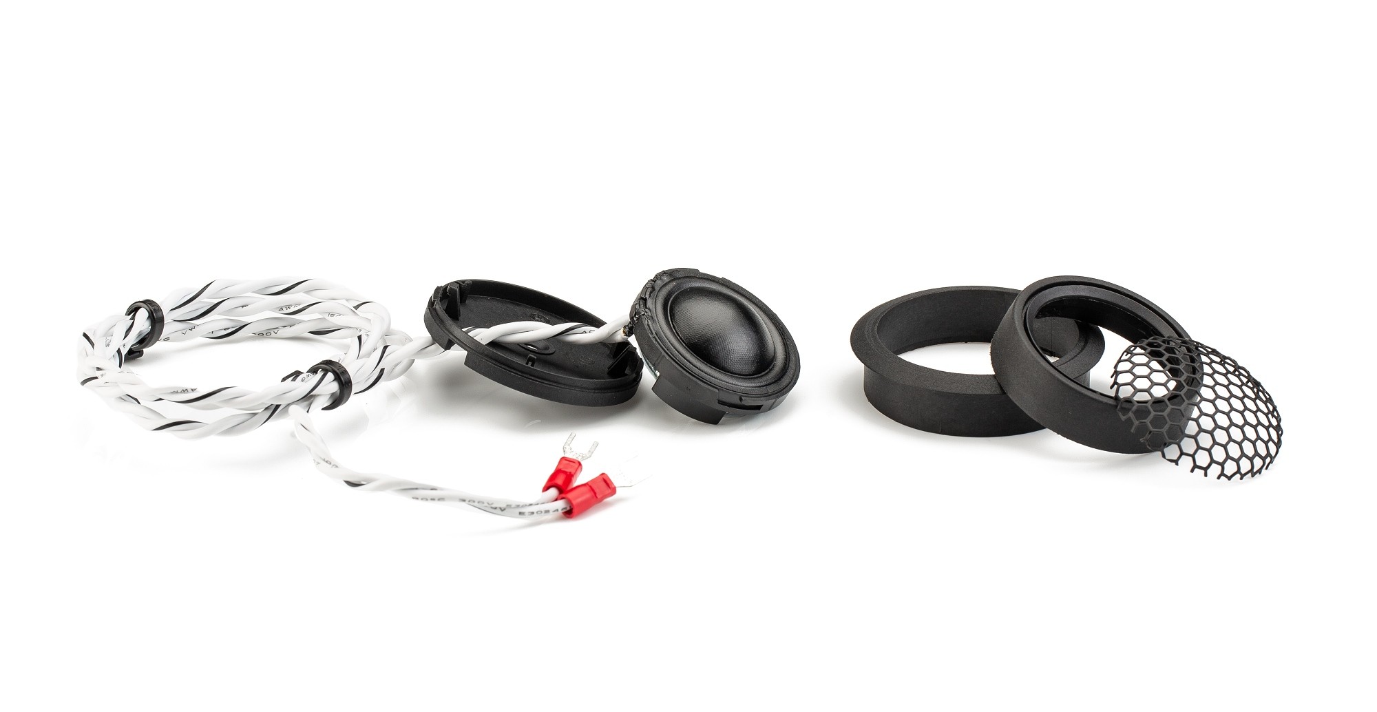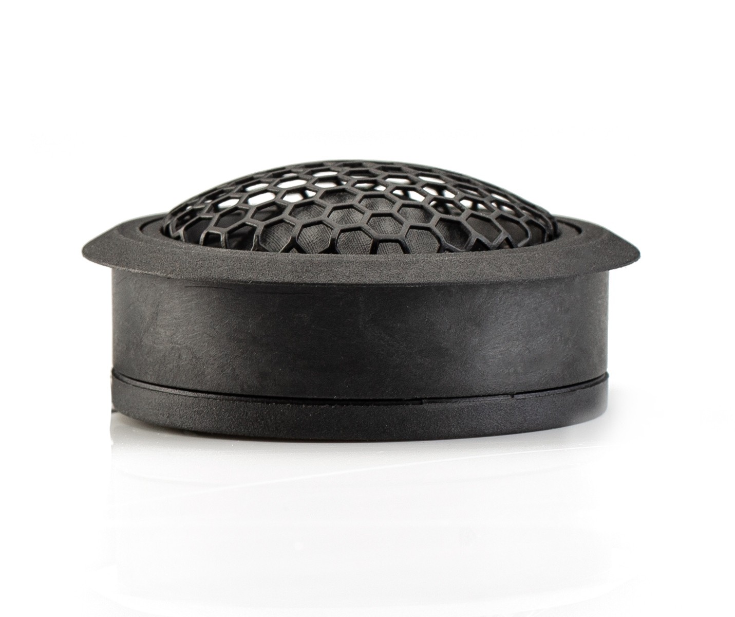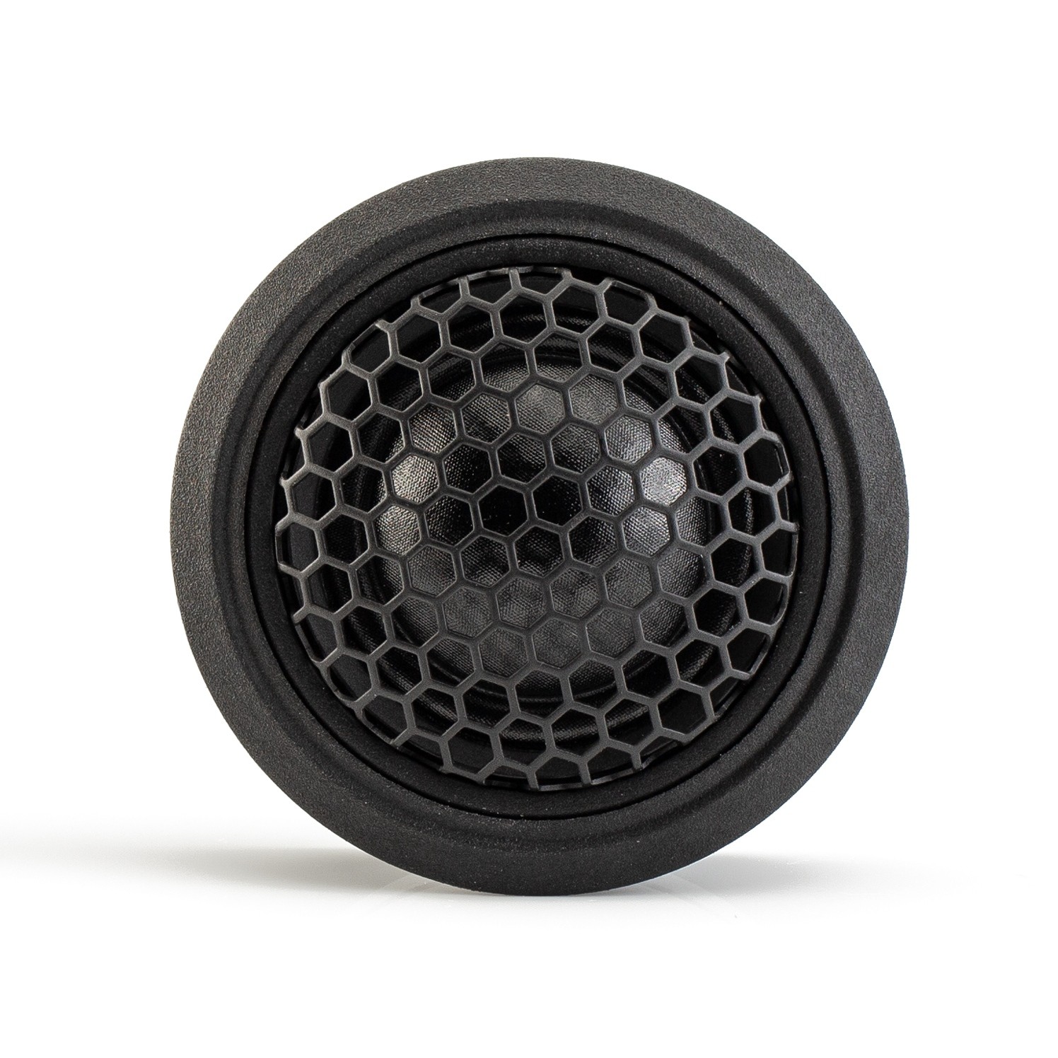 | Тип на високоговорителитеКоаксиални високоговорители: Коаксиалните високоговорители се характеризират с конструкция, наречена всичко в едно. Високочестотният и среднобасовият говорител са в един и същ кош. Предимството е по-лесен монтаж, но поради свързването или близостта на честотните диапазони в един говорител обикновено се понижава качеството на звука. Обикновено в центъра на среднобасовия говорител се намира високочестотният говорител, чиито звукова бобина работи във втората въздушна междина на общия магнитен кръг. Коаксиален говорител с три честотни диапазона се състои от среднобасов говорител, отпред на специален носач е поставен средночестотният говорител и отделен високочестотен. Компонентни високоговорители: Компонентните високоговорители се отличават с разделянето на отделни честотни диапазони: високочестотен + среднобасов + евентуално басов диапазон. Отделните говорители могат да бъдат разположени напълно отделно, което води до по-добро звуково и акустично представяне. В огромното мнозинство от случаите при компонентните високоговорители се доставя и външна кросоувърна мрежа, която разделя високите, средните/среднобасовите и при системи с три честотни диапазона и басовите честоти, както и позволява настройване на нивото в децибели на високочестотния говорител (напр. +2 dB, 0 dB, -2 dB), стръмността (напр. 6 dB/октава, 12 dB/октава) или активно/bi-amp свързване. | Високочестотни |