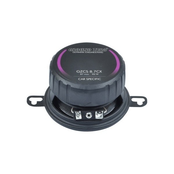Повечето оригинални заводски тонколони не могат напълно да удовлетворят очакванията на по-взискателните клиенти, особено базовото оборудване оставя голямо поле за подобряване на динамиката и качеството на звука. Монтирането на aftermarket тонколони е лесен начин да подобрите аудио системата. Серията Ground Zero CAR SPECIFIC се състои от различни компоненти, проектирани за лесен монтаж в OEM аудио системи на съвременни автомобили, като BMW или Mercedes-Benz. Ground Zero GZCS 8.7CX е универсална 87 mm 2-посочна коаксиална тонколонна система.Основни характеристики
