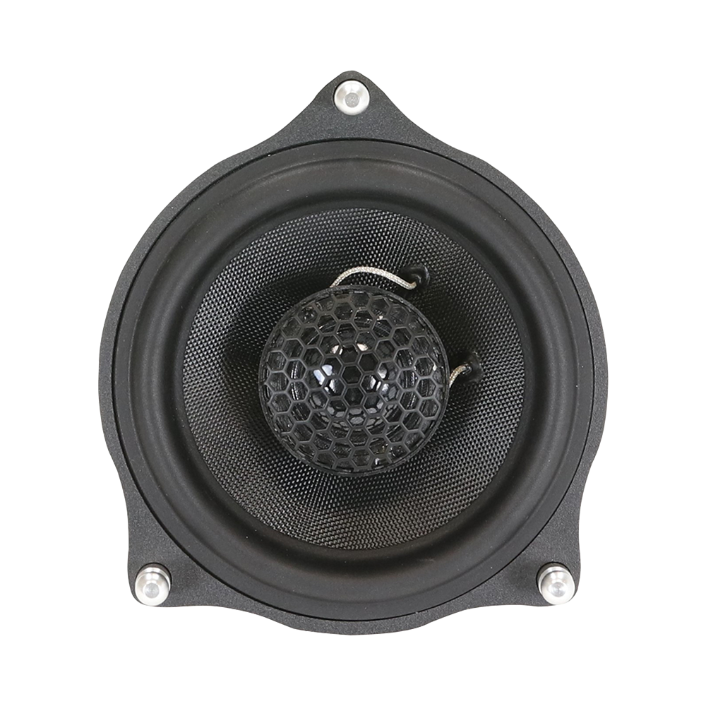 | Тип на високоговорителитеКоаксиални високоговорители: Коаксиалните високоговорители се характеризират с конструкция, наречена всичко в едно. Високочестотният и среднобасовият говорител са в един и същ кош. Предимството е по-лесен монтаж, но поради свързването или близостта на честотните диапазони в един говорител обикновено се понижава качеството на звука. Обикновено в центъра на среднобасовия говорител се намира високочестотният говорител, чиито звукова бобина работи във втората въздушна междина на общия магнитен кръг. Коаксиален говорител с три честотни диапазона се състои от среднобасов говорител, отпред на специален носач е поставен средночестотният говорител и отделен високочестотен. Компонентни високоговорители: Компонентните високоговорители се отличават с разделянето на отделни честотни диапазони: високочестотен + среднобасов + евентуално басов диапазон. Отделните говорители могат да бъдат разположени напълно отделно, което води до по-добро звуково и акустично представяне. В огромното мнозинство от случаите при компонентните високоговорители се доставя и външна кросоувърна мрежа, която разделя високите, средните/среднобасовите и при системи с три честотни диапазона и басовите честоти, както и позволява настройване на нивото в децибели на високочестотния говорител (напр. +2 dB, 0 dB, -2 dB), стръмността (напр. 6 dB/октава, 12 dB/октава) или активно/bi-amp свързване. | 2-пътен коаксиален |