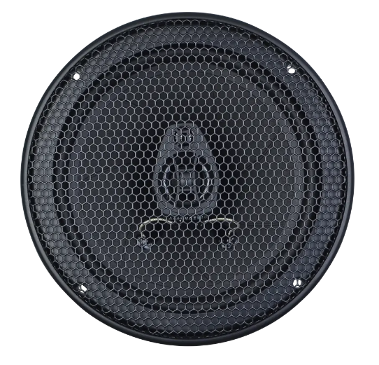 | Тип на високоговорителитеКоаксиални високоговорители: Коаксиалните високоговорители се характеризират с конструкция, наречена всичко в едно. Високочестотният и среднобасовият говорител са в един и същ кош. Предимството е по-лесен монтаж, но поради свързването или близостта на честотните диапазони в един говорител обикновено се понижава качеството на звука. Обикновено в центъра на среднобасовия говорител се намира високочестотният говорител, чиито звукова бобина работи във втората въздушна междина на общия магнитен кръг. Коаксиален говорител с три честотни диапазона се състои от среднобасов говорител, отпред на специален носач е поставен средночестотният говорител и отделен високочестотен. Компонентни високоговорители: Компонентните високоговорители се отличават с разделянето на отделни честотни диапазони: високочестотен + среднобасов + евентуално басов диапазон. Отделните говорители могат да бъдат разположени напълно отделно, което води до по-добро звуково и акустично представяне. В огромното мнозинство от случаите при компонентните високоговорители се доставя и външна кросоувърна мрежа, която разделя високите, средните/среднобасовите и при системи с три честотни диапазона и басовите честоти, както и позволява настройване на нивото в децибели на високочестотния говорител (напр. +2 dB, 0 dB, -2 dB), стръмността (напр. 6 dB/октава, 12 dB/октава) или активно/bi-amp свързване. | Коаксиален 2-пътен |