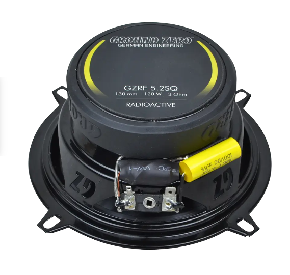 Radioactive GZRF 5.2SQX от Ground Zero са 5" (13,5cm) коаксиални тонколони. Тази 2-полосна тонколонна система се отличава с алуминиева мембрана, гумен ринг и центриращ spider Conex®. Тонколоната също така има стоманена кошница с оптимизирана резонансна характеристика, високоефективен 3 ома импеданс, 25mm копринена куполна пищялка и феритен магнит, което гарантира надеждна работа.Основни специфики на високата серия Ground Zero Radioactive