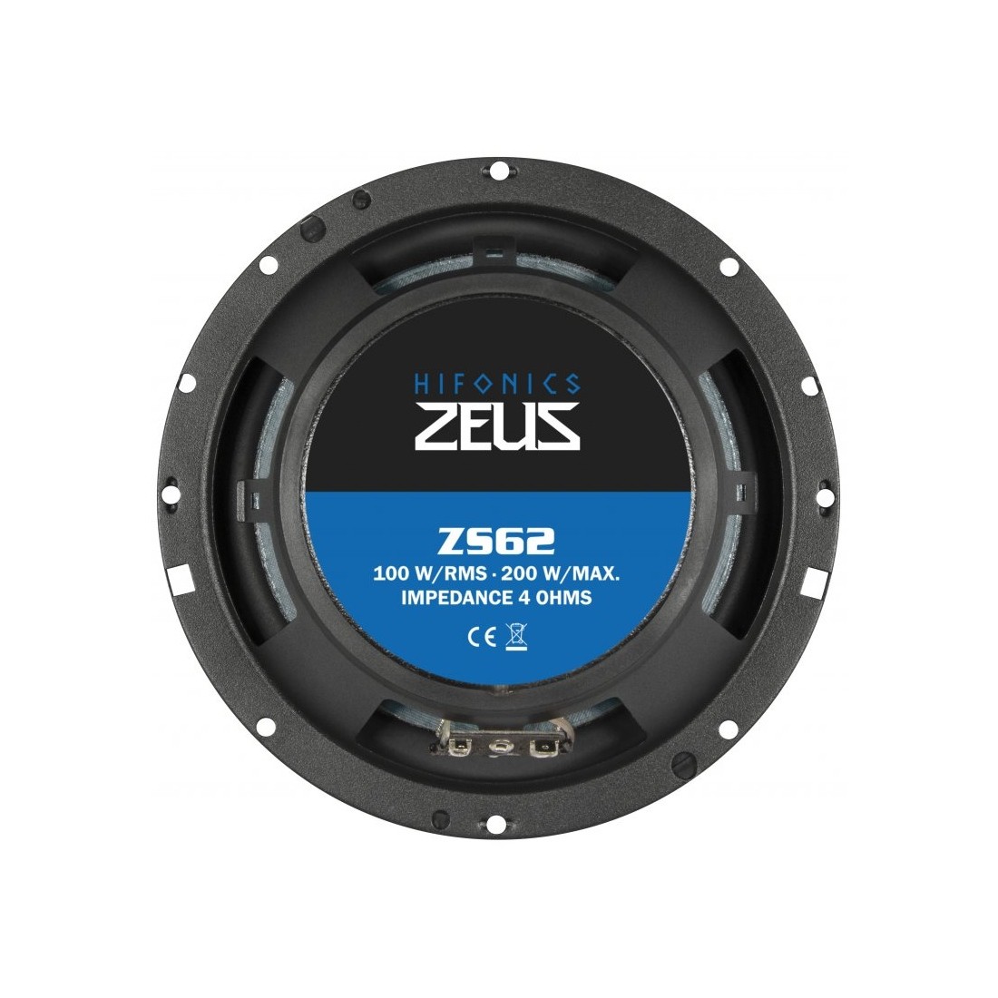Въз основа на висококачествените говорители от серията ZX, Hifonics представя моделите ZEUS ZS с метални кошници като ценово привлекателна допълнителна линия. Всички говорители имат магнитни предпазители, доставят се в двойки със сет решетки и са налични като еднополосни (ZSW) или коаксиални (ZS) в размери 10, 13 и 16,5 см. Често коаксиалните говорители са просто конструирани във височинния отдел, но не и говорителите ZEUS ZS - те вече имат много добре звучащ 20 мм високочестотен говорител с копринен купол. Заедно с отделните компоненти от серията ZX Hifonics предлага универсална модулна система.Основни характеристики