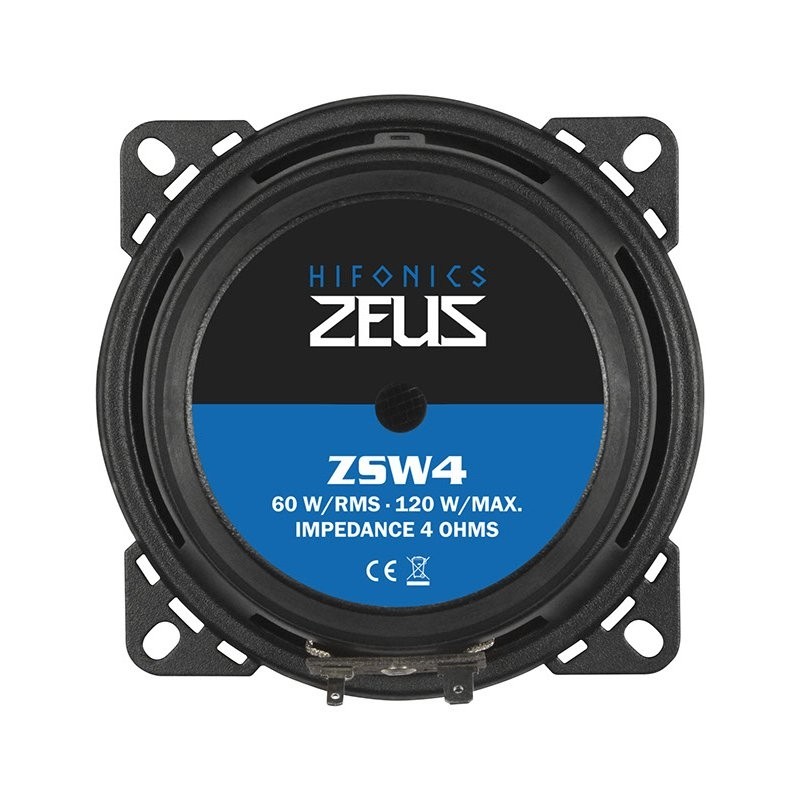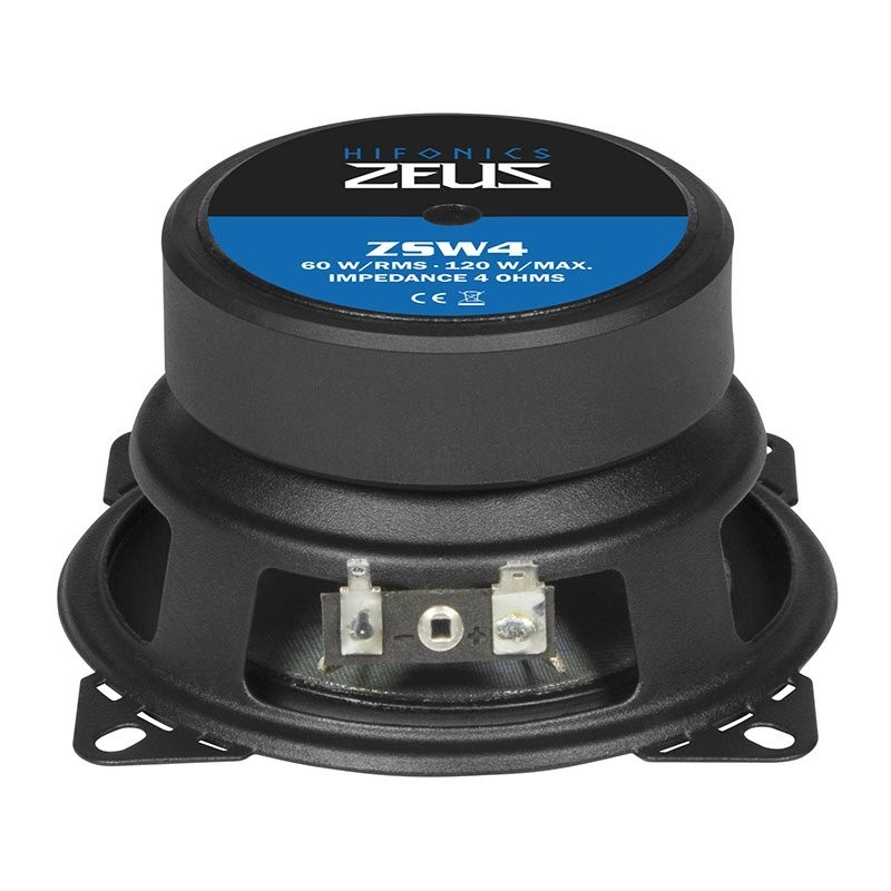 Въз основа на висококачествените говорители от серията ZX, Hifonics представя моделите ZEUS ZS с метални кошници като ценово привлекателна допълнителна линия. Те също така имат изтънчено конструиран сандвич-диафрагмен материал, изработен от специална композитна смес от стъклени влакна и хартия, който осигурява оптимални резултати по отношение на звука. Всички говорители имат магнитни предпазители, доставят се в двойки със сет решетки и са налични като еднополосни (ZSW) или коаксиални (ZS) в размери 10, 13 и 16,5 см. Често коаксиалните говорители са просто конструирани във височинния отдел, но не и говорителите ZEUS ZS - те вече имат много добре звучащ 20 мм високочестотен говорител с копринен купол. Заедно с отделните компоненти от серията ZX Hifonics предлага универсална модулна система.Основни характеристики