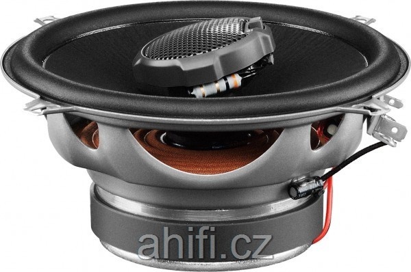 | Тип на високоговорителитеКоаксиални високоговорители: Коаксиалните високоговорители се характеризират с конструкция, наречена всичко в едно. Високочестотният и среднобасовият говорител са в един и същ кош. Предимството е по-лесен монтаж, но поради свързването или близостта на честотните диапазони в един говорител обикновено се понижава качеството на звука. Обикновено в центъра на среднобасовия говорител се намира високочестотният говорител, чиито звукова бобина работи във втората въздушна междина на общия магнитен кръг. Коаксиален говорител с три честотни диапазона се състои от среднобасов говорител, отпред на специален носач е поставен средночестотният говорител и отделен високочестотен. Компонентни високоговорители: Компонентните високоговорители се отличават с разделянето на отделни честотни диапазони: високочестотен + среднобасов + евентуално басов диапазон. Отделните говорители могат да бъдат разположени напълно отделно, което води до по-добро звуково и акустично представяне. В огромното мнозинство от случаите при компонентните високоговорители се доставя и външна кросоувърна мрежа, която разделя високите, средните/среднобасовите и при системи с три честотни диапазона и басовите честоти, както и позволява настройване на нивото в децибели на високочестотния говорител (напр. +2 dB, 0 dB, -2 dB), стръмността (напр. 6 dB/октава, 12 dB/октава) или активно/bi-amp свързване. | коаксиални двулентови |
