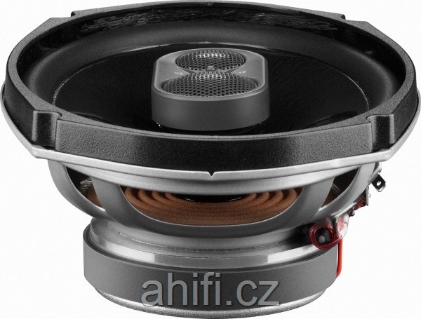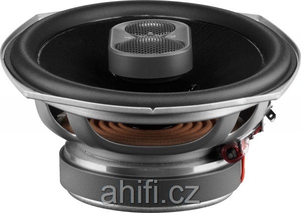| Тип на високоговорителитеКоаксиални високоговорители: Коаксиалните високоговорители се характеризират с конструкция, наречена всичко в едно. Високочестотният и среднобасовият говорител са в един и същ кош. Предимството е по-лесен монтаж, но поради свързването или близостта на честотните диапазони в един говорител обикновено се понижава качеството на звука. Обикновено в центъра на среднобасовия говорител се намира високочестотният говорител, чиито звукова бобина работи във втората въздушна междина на общия магнитен кръг. Коаксиален говорител с три честотни диапазона се състои от среднобасов говорител, отпред на специален носач е поставен средночестотният говорител и отделен високочестотен. Компонентни високоговорители: Компонентните високоговорители се отличават с разделянето на отделни честотни диапазони: високочестотен + среднобасов + евентуално басов диапазон. Отделните говорители могат да бъдат разположени напълно отделно, което води до по-добро звуково и акустично представяне. В огромното мнозинство от случаите при компонентните високоговорители се доставя и външна кросоувърна мрежа, която разделя високите, средните/среднобасовите и при системи с три честотни диапазона и басовите честоти, както и позволява настройване на нивото в децибели на високочестотния говорител (напр. +2 dB, 0 dB, -2 dB), стръмността (напр. 6 dB/октава, 12 dB/октава) или активно/bi-amp свързване. | коаксиален 3-посочен |