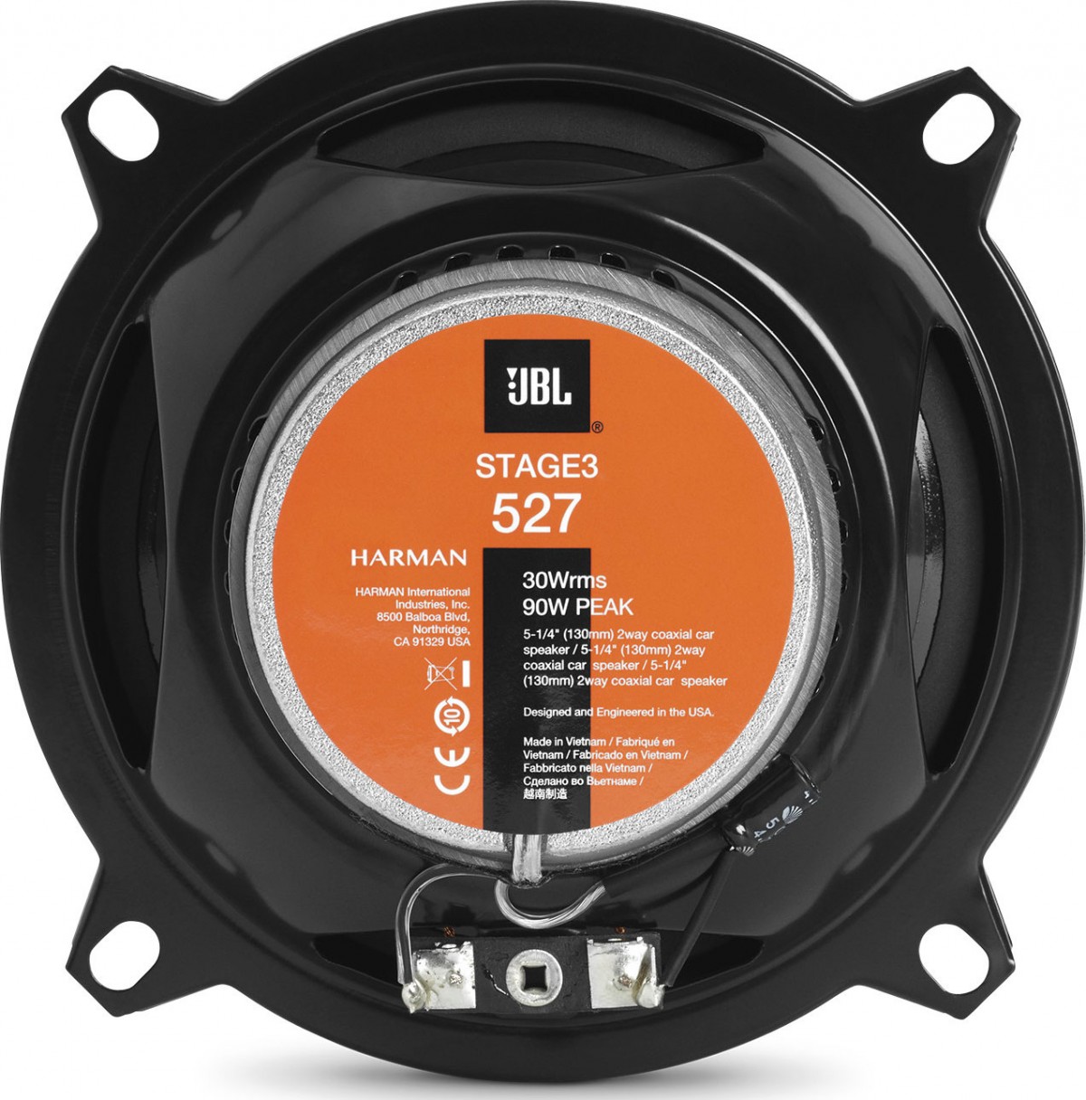 \n\nГоворителите JBL Stage3 527 са идеален избор за ъпгрейд на фабричното озвучаване, когато искате да постигнете по-чист, по-динамичен и по-детайлен звук без сложна инсталация. Тези 5,25\" (130 mm) двулентови коаксиални говорители комбинират доказани технологии на JBL с висока ефективност, така че могат да звучат по-силно и по-качествено дори при захранване от обикновено авторадио.