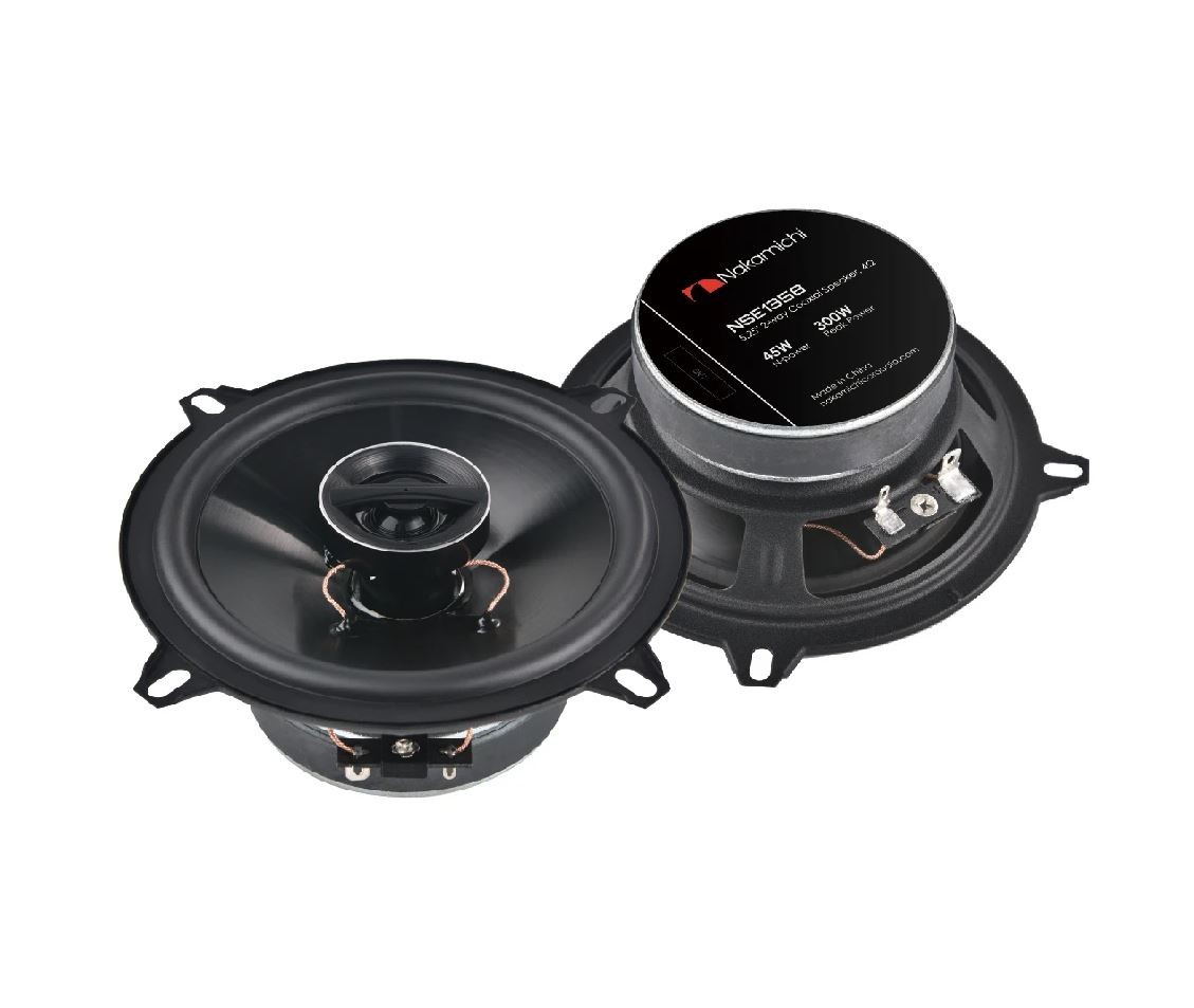 Коаксиалната серия тонколони Nakamichi NSE се отличава с мембрана от инжекционно формован полипропилен, която е едновременно много лека и твърда. Благодарение на по-широката повърхност на мембраната се постига по-дълбок и по-ясен бас. Високочестотният говорител позволява по-добър високочестотен отзвук и подобрява вокалите. Шелковият високочестотен говорител е проектиран да бъде по-лек, да повишава ефективността на възпроизвеждането на звука при запазване на същото ниво на сила на звука и да осигурява най-гладките високи честоти. Подобрената кросоувър верига е скрита в говорителя за по-чист вид и по-лесен монтаж. Гуменият подвес е импрегниран, за да поддържа устойчиво ниво на възпроизвеждане на звука при продължителна експлоатация във вашия автомобил.Ключови характеристики на тонколоните Nakamichi NSE-1358
