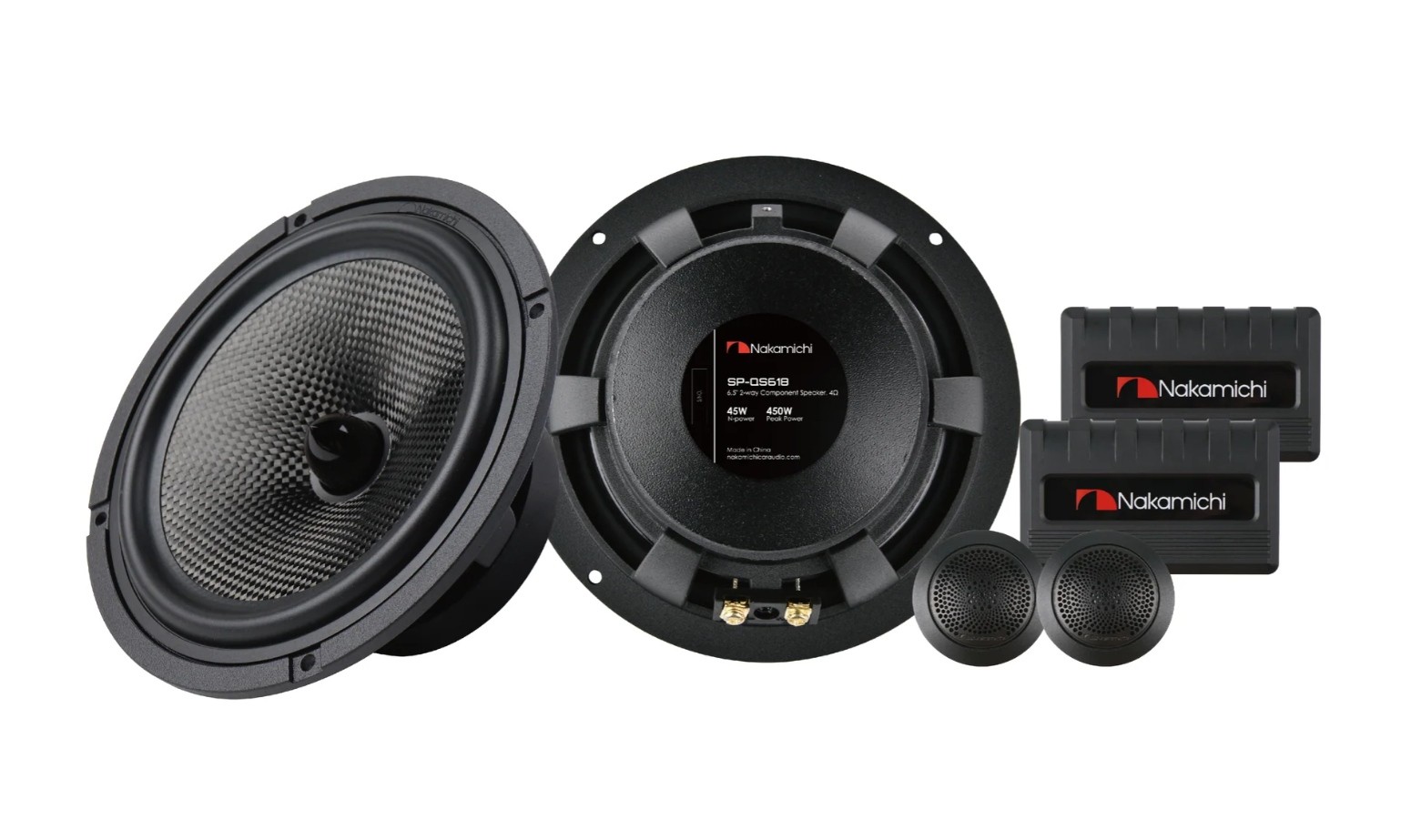 Компонентните тонколони Nakamichi SP-QS618 разширяват през 2023 г. успешната моделна серия NSA и носят няколко подобрения. Мембраната на средно-нискочестотния говорител е от карбонови влакна, което е необичаен материал в тази ценова категория. Благодарение на това мембраната е много здрава, отличава се с перфектно самоприглушаване и примерна лекота. В средно-нискочестотния говорител е вграден твърд фазов копче за предотвратяване на фазово отместване и спад в средния обхват. Гуменото окачване осигурява гъвкавост и устойчивост в екстремните условия на автомобила. 20 mm куполният високочестотен говорител е изработен от копринена тъкан за фино и естествено възпроизвеждане на високи честоти и е защитен с дизайнерска решетка с повишена акустична пропускливост. В опаковката ще намерите и честотни кросоувъри за лесно свързване в пасивен режим.Важно за тонколоните Nakamichi SP-QS618