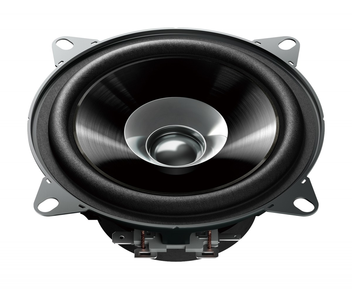 | Тип на високоговорителитеКоаксиални високоговорители: Коаксиалните високоговорители се характеризират с конструкция, наречена всичко в едно. Високочестотният и среднобасовият говорител са в един и същ кош. Предимството е по-лесен монтаж, но поради свързването или близостта на честотните диапазони в един говорител обикновено се понижава качеството на звука. Обикновено в центъра на среднобасовия говорител се намира високочестотният говорител, чиито звукова бобина работи във втората въздушна междина на общия магнитен кръг. Коаксиален говорител с три честотни диапазона се състои от среднобасов говорител, отпред на специален носач е поставен средночестотният говорител и отделен високочестотен. Компонентни високоговорители: Компонентните високоговорители се отличават с разделянето на отделни честотни диапазони: високочестотен + среднобасов + евентуално басов диапазон. Отделните говорители могат да бъдат разположени напълно отделно, което води до по-добро звуково и акустично представяне. В огромното мнозинство от случаите при компонентните високоговорители се доставя и външна кросоувърна мрежа, която разделя високите, средните/среднобасовите и при системи с три честотни диапазона и басовите честоти, както и позволява настройване на нивото в децибели на високочестотния говорител (напр. +2 dB, 0 dB, -2 dB), стръмността (напр. 6 dB/октава, 12 dB/октава) или активно/bi-amp свързване. | Двоен конус |