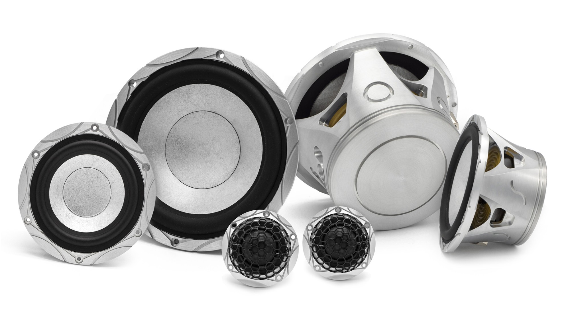 В най-високата серия Opus влизат нискочестотни, средночестотни и високочестотни говорители, обработени от един парче алуминиев блок. Интересното е, че алуминиевият блок за нискочестотния говорител не може да бъде повторно използван за производството на по-малки компоненти като средночестотни и високочестотни говорители. И това въпреки че от първоначалното тегло на алуминиевия блок (6265 g) се използва само под 12% (744 g). Кошът от един парче алуминий няма никакви допуски, които да водят до загуба на производителност при движение на диафрагмата и е абсолютно имунизиран срещу всякакви вибрации. Същевременно осигурява оптимален въздушен поток и отлично отвеждане на топлина от говорителната бобина благодарение на петте огромни отвори между spider-а и магнитната система. Дизайнът на говорителите се подчертава от кабелните терминали във формата на метроном, които са изработени от месинг и след това никелирани. За осигуряване на максимална вярност на звука при ниско- и средночестотните говорители е избрана традиционната хартиена мембрана в сребристо изпълнение, която перфектно се съчетава със алуминиевия кош. Високочестотните говорители с копринен купол диаметър 28 mm също са изработени от един блок алуминий. Въпреки малките си размери, високочестотният говорител съдържа празна камера зад магнитната част, която позволява на високочестотния говорител да възпроизвежда и по-ниски честоти — особено ценено при двулентови системи. Интегрираните конектори са проектирани да предлагат единна естетика и същевременно минимален обем на тонколоните.