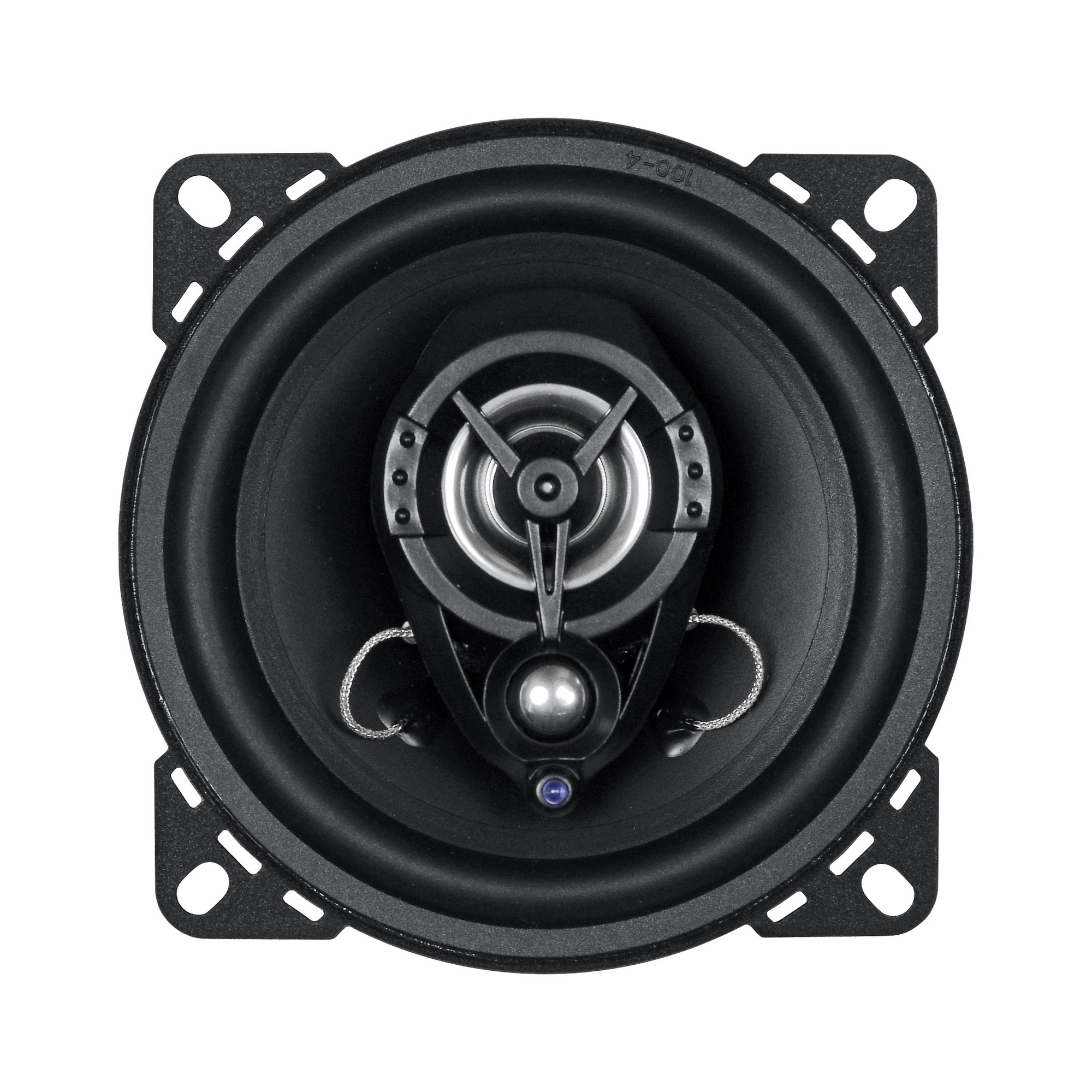 | Тип на високоговорителитеКоаксиални високоговорители: Коаксиалните високоговорители се характеризират с конструкция, наречена всичко в едно. Високочестотният и среднобасовият говорител са в един и същ кош. Предимството е по-лесен монтаж, но поради свързването или близостта на честотните диапазони в един говорител обикновено се понижава качеството на звука. Обикновено в центъра на среднобасовия говорител се намира високочестотният говорител, чиито звукова бобина работи във втората въздушна междина на общия магнитен кръг. Коаксиален говорител с три честотни диапазона се състои от среднобасов говорител, отпред на специален носач е поставен средночестотният говорител и отделен високочестотен. Компонентни високоговорители: Компонентните високоговорители се отличават с разделянето на отделни честотни диапазони: високочестотен + среднобасов + евентуално басов диапазон. Отделните говорители могат да бъдат разположени напълно отделно, което води до по-добро звуково и акустично представяне. В огромното мнозинство от случаите при компонентните високоговорители се доставя и външна кросоувърна мрежа, която разделя високите, средните/среднобасовите и при системи с три честотни диапазона и басовите честоти, както и позволява настройване на нивото в децибели на високочестотния говорител (напр. +2 dB, 0 dB, -2 dB), стръмността (напр. 6 dB/октава, 12 dB/октава) или активно/bi-amp свързване. | Коаксиални 3-пътни |