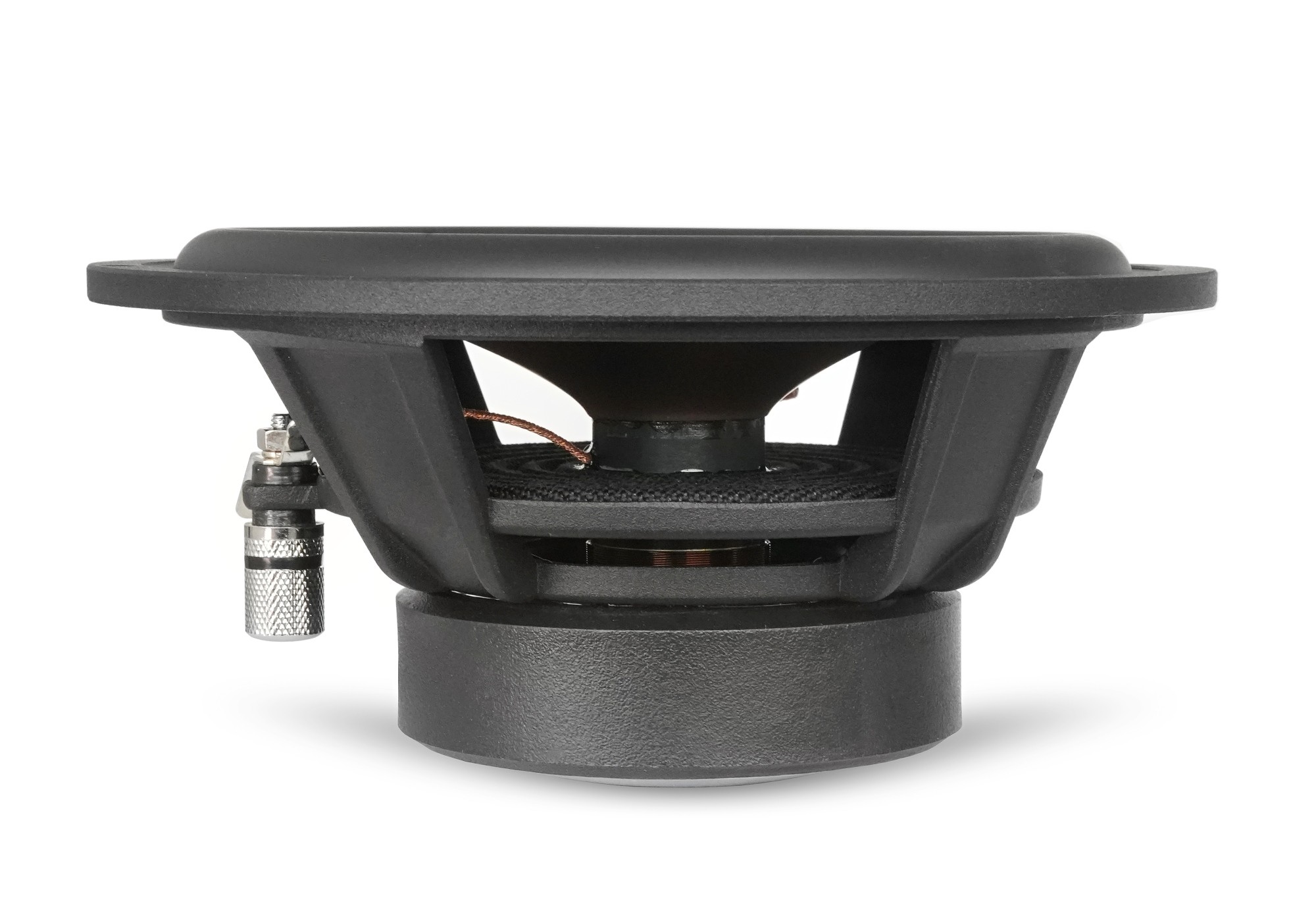 | Диаметър на среднебасовия говорителДиаметърът на говорителя се посочва като диаметър на целия говорител, без да се включват монтажните закрепвания, при които при по-малките говорители (87, 100, 130 mm) закрепванията може да стърчат допълнително. Някои говорители са овални и там размерът се дава в инчове, винаги от най-късата към най-дългата страна. Един инч е приблизително 2,5 cm. | 165 mm |