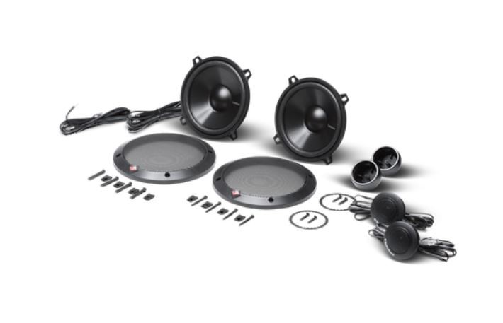 | Тип на високоговорителитеКоаксиални високоговорители: Коаксиалните високоговорители се характеризират с конструкция, наречена всичко в едно. Високочестотният и среднобасовият говорител са в един и същ кош. Предимството е по-лесен монтаж, но поради свързването или близостта на честотните диапазони в един говорител обикновено се понижава качеството на звука. Обикновено в центъра на среднобасовия говорител се намира високочестотният говорител, чиито звукова бобина работи във втората въздушна междина на общия магнитен кръг. Коаксиален говорител с три честотни диапазона се състои от среднобасов говорител, отпред на специален носач е поставен средночестотният говорител и отделен високочестотен. Компонентни високоговорители: Компонентните високоговорители се отличават с разделянето на отделни честотни диапазони: високочестотен + среднобасов + евентуално басов диапазон. Отделните говорители могат да бъдат разположени напълно отделно, което води до по-добро звуково и акустично представяне. В огромното мнозинство от случаите при компонентните високоговорители се доставя и външна кросоувърна мрежа, която разделя високите, средните/среднобасовите и при системи с три честотни диапазона и басовите честоти, както и позволява настройване на нивото в децибели на високочестотния говорител (напр. +2 dB, 0 dB, -2 dB), стръмността (напр. 6 dB/октава, 12 dB/октава) или активно/bi-amp свързване. | Компонентни 2-полосни |