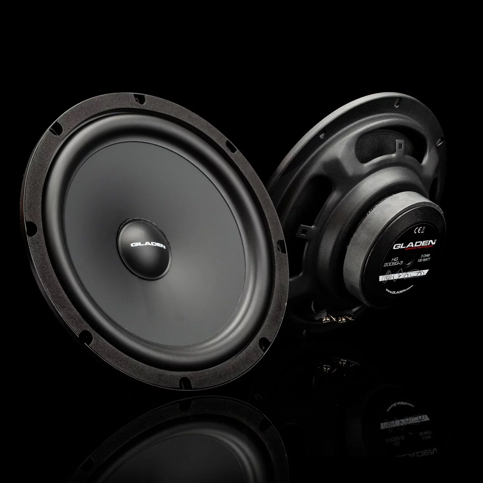 Gladen One 200 T5-G3 залага на отличните технически характеристики на новоразработено шаси с феритови магнити. Тонколоните се монтират много лесно във вашия VW T5 благодарение на конектори специфични за автомобила и точно пасващи държачи. Новите мембрани от покрита хартия са по-стегнати и имат по-добро вътрешно демпфиране. Високочестотните говорители имат триточково закрепване, специфично за дадения автомобил, и затова могат да бъдат невидимо монтирани зад лайсната на A-колоната. Кросоувърът е оптимално адаптиран към условията на VW T5. Моделната серия One на Gladen включва говорителни системи, които по дизайн и звучене са пригодени за конкретни автомобили. Мисията на серия One е да постигне перфектно съгласуване на отделните компоненти с фабричната система на автомобила. Тонколоните имат същата форма, размер и конектори като фабричните говорители, което позволява много лесен и бърз монтаж. Всички говорители от серия One бяха тествани и оптимално настроени не само в вътрешната лаборатория на Gladen, но и в реални условия в конкретните модели автомобили. В края на разработката всички говорители преминаха през множество тестове на параметри и честотна характеристика и бяха финално фиксирани от звуковите инженери на Gladen. И това с една единствена цел — да предоставят оптимално звуково изживяване с акцент върху висококачествен звук, детайл и лесен монтаж в духа на Plug & Play.Основни характеристики на говорителите Gladen One 200 T5-G3