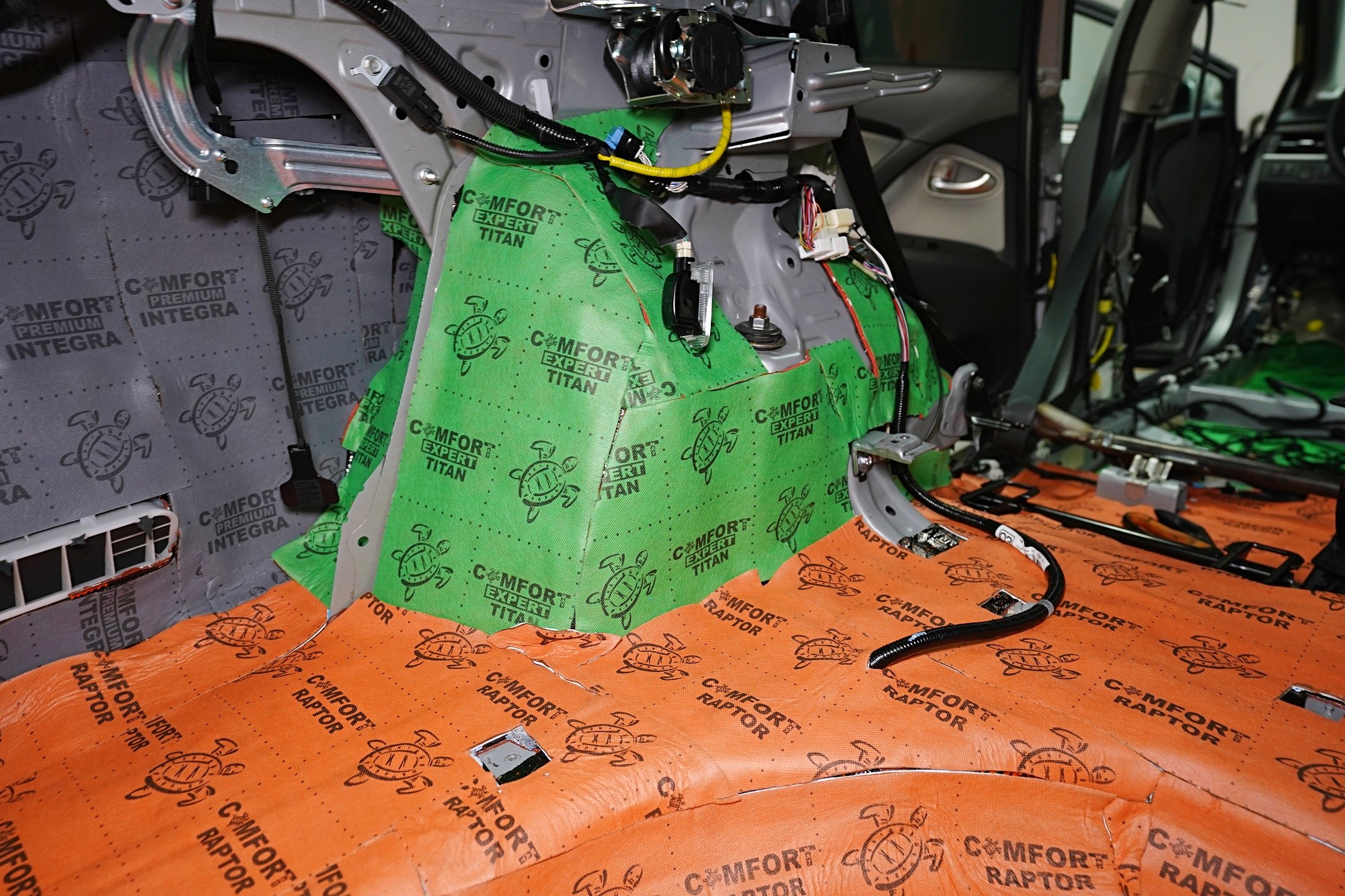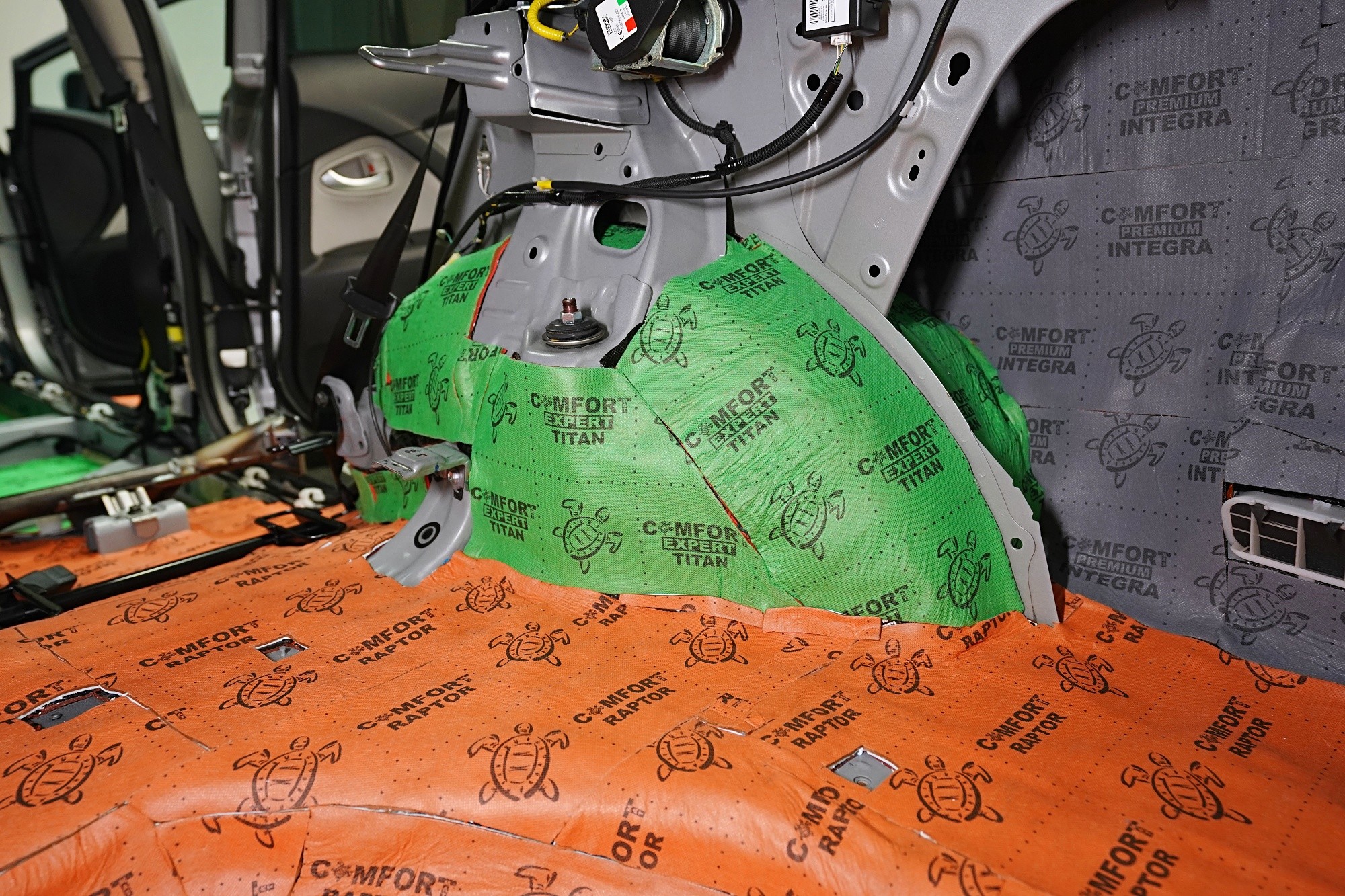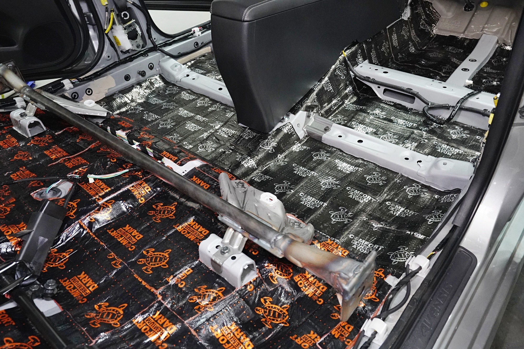 Шумоизолация на Toyota Avensis. Този автомобил наскоро беше при нас за шумоизолация на вратите и смяна на говорителите и собственикът пожела да шумоизолираме и останалата част от автомобила. Затова шумоизолирахме пода, покрива, багажното пространство, таблото и предните и задните арки отвътре. Приложихме висококачествени антивибрационни и звукоизолационни материали Comfortmat, а за пода избрахме най-високата професионална серия Expert за максимална шумоизолация на съответната зона. Повече подробности ще намерите в нашия фоторепортаж. За допълване на басовата част на новите говорители инсталирахме под шофьорското седалка плосък активен субуфер на традиционния японски производител Nakamichi.Показване на продуктиСкриване на продукти
