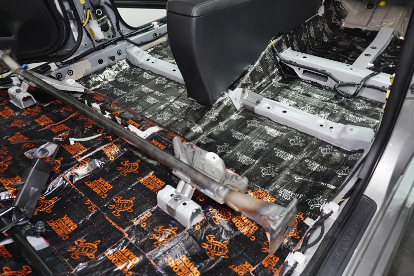 Вид на инсталациятаOdhlučnění podlahy, kufru, střechy a torpéda + instalace subwooferu