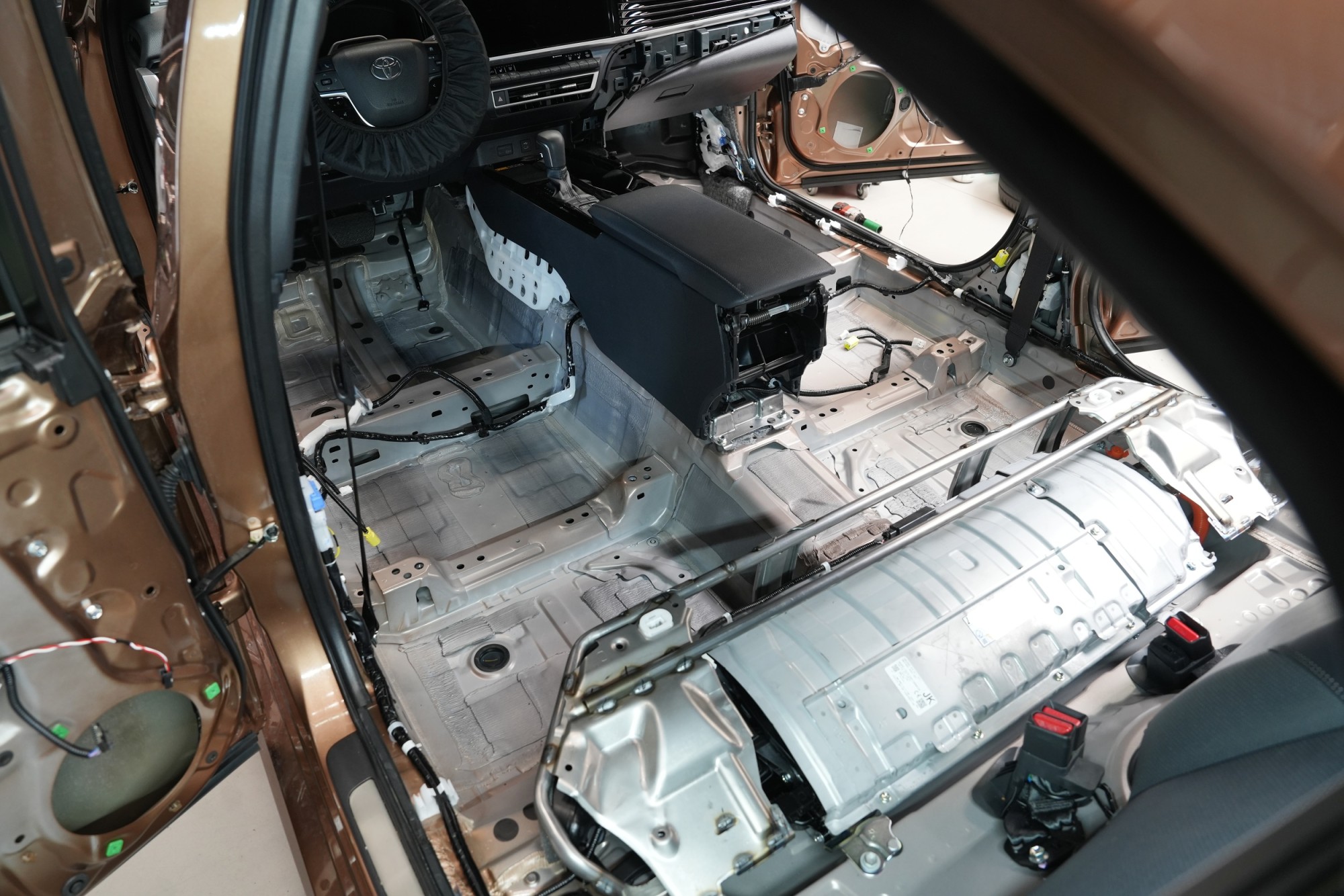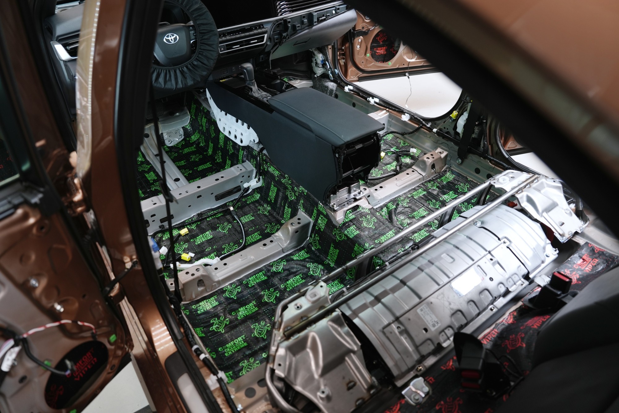 Toyota Camry от последното поколение с хибридно задвижване представлява топовия седан на марката за европейските пазари. Елегантният автомобил с тих и култивиран двигател, отличен разход на гориво и високо ниво на оборудване е особено популярен сред по-взискателните шофьори, търсещи комфорт, надеждност и техническа напредналост. Въпреки всички положителни качества, Camry не е изключение по отношение на недостатъчната фабрична звукоизолация. Хибридната конструкция допринася за тихата работа на агрегата, но липсата на антивибрационна обработка на каросерията и слабото обезшумяване на окачването и гумите се проявяват като аеродинамичен и търкалящ се шум, който при пътуване по магистрала и по неравности е особено доловим от подкалниците, праговете и задната част на автомобила.
