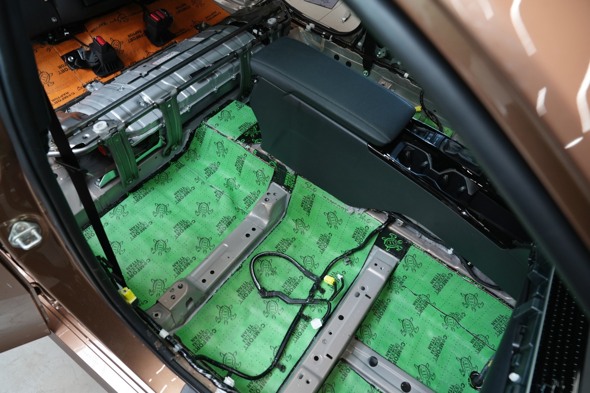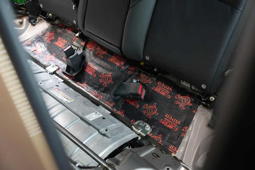 Монтажът беше извършен от наш четиричленен екип в рамките на един работен ден. Резултатът е значително по-тих интериор, който още повече подчертава комфортния характер на Camry. Според нашите досегашни измервания и опит от други автомобили от този клас, обезшумяването Comfortmat в варианта Expert Plus осигурява средно намаление на шума в кабината с 3,5 до 4 dB, което акустично отговаря на повече от двукратно намаление на шума в сравнение с фабричното състояние. На практика разликата е веднага забележима – особено при пътувания по магистрала или при каране по лоши настилки, когато интериорът е значително по-тих и по-приятен.