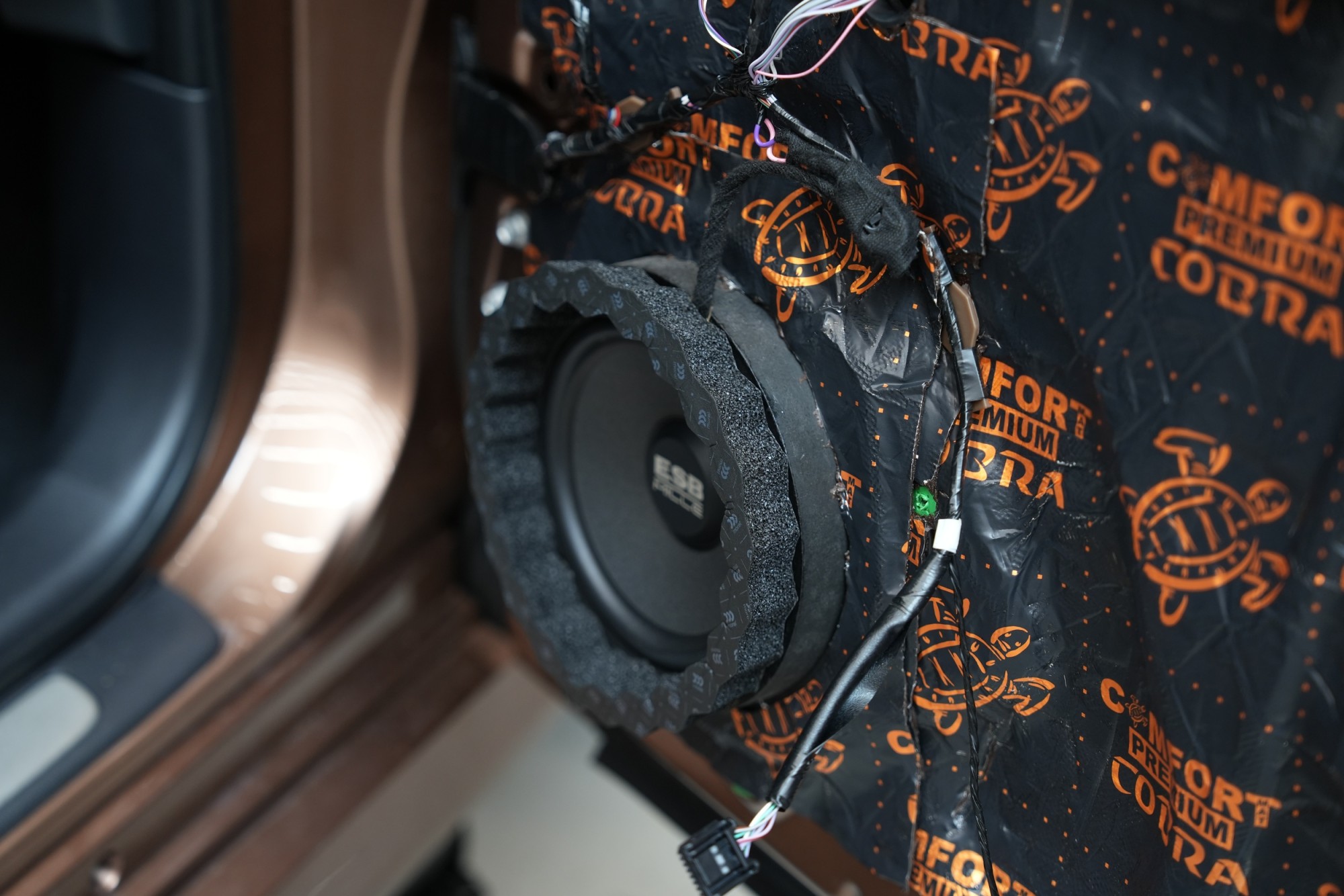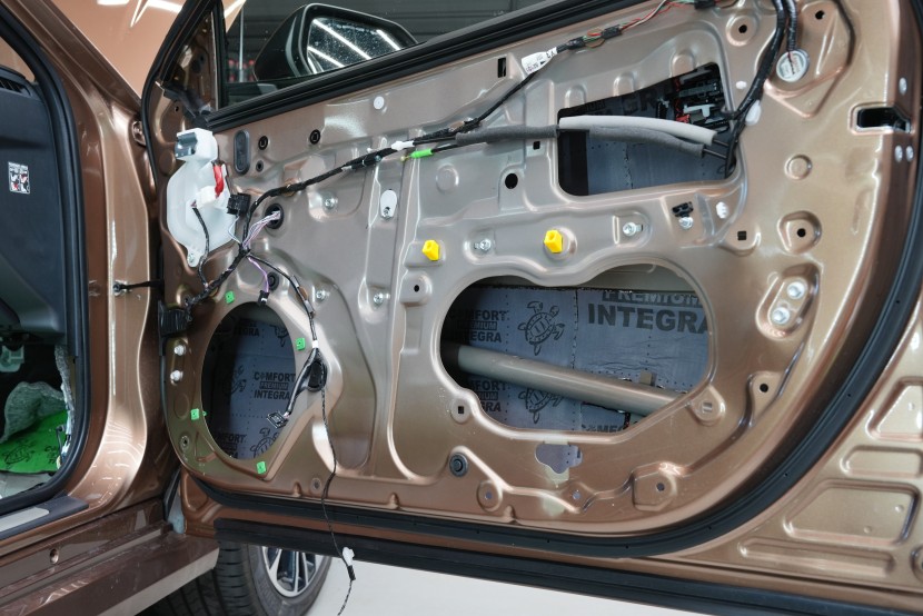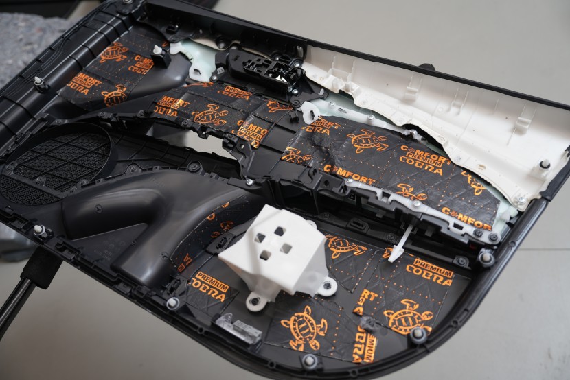 В рамките на монтажа също така извършихме смяна на фабричните предни високоговорители, което води до съществено подобрение на качеството на звука при минимални разходи. Тъй като вратите вече са демонтирани и заглушени, смяната е бърза, ефективна и без допълнителни намеси в автомобила. Именно в тази фаза винаги препоръчваме смяната на високоговорителите, тъй като общият принос за звуковото възпроизвеждане, предвид вложението, е доста съществен.