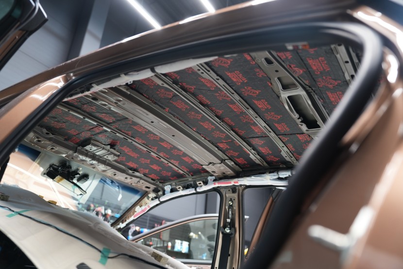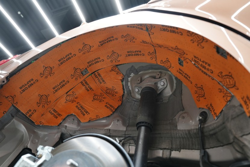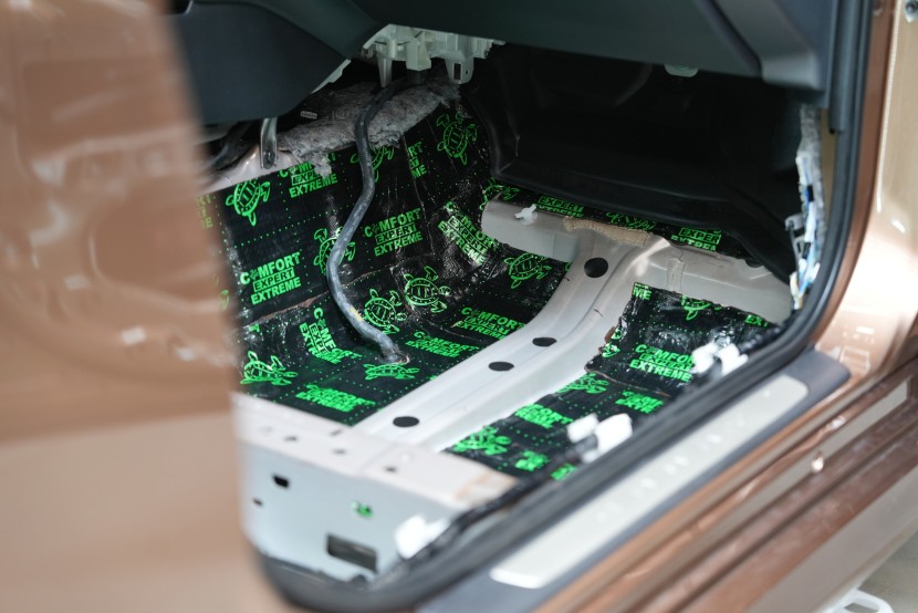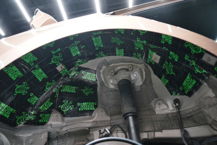 По желание на клиента извършихме пълно обезшумяване в нашата най-ефективна версия Expert Plus, която допълнително подобрихме по желание на клиента. Програмата Expert Plus включва приложение на поне два слоя от висококачествени материали Comfortmat от сериите Premium и Expert, които комбинират много ефективна антивибрационна защита с модерни мембранни материали за заглушаване на въздушно предаван шум. Обезшумяхме цялата подова част включително задната зона, багажното пространство, покрива, таблото, предния капак, предните, задните и петите врати и подкалниците от вътрешната страна. В най-натоварените области, като пода и подкалниците, използвахме изключително ефективен антивибрационен материал и многослойен мембранен материал с високо заглушаване. По избор разширихме обезшумяването и към задните и предните подкалници отвън, което усилва вече значителния ефект при приложение и от вътрешната страна.
